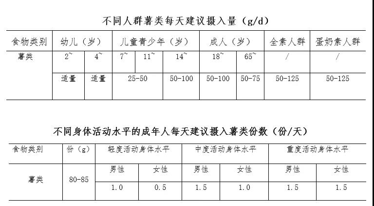 平均每天摄入薯类50-100克,