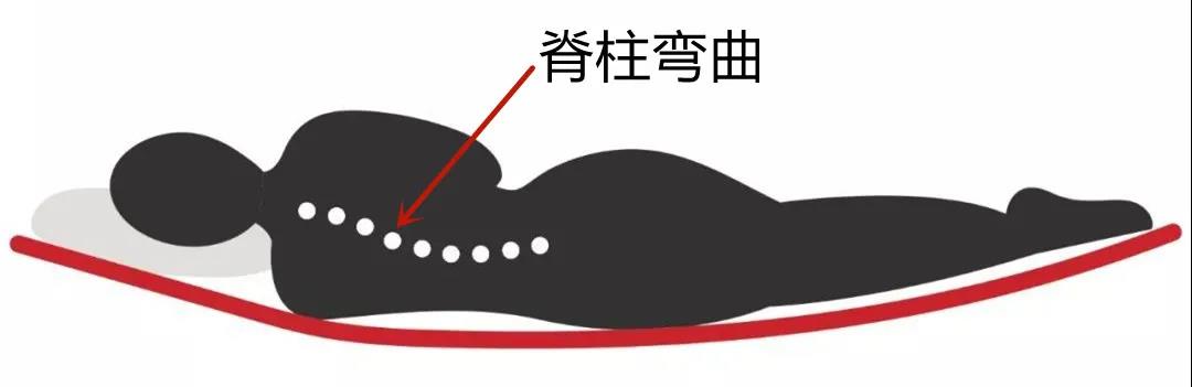 同样的道理,如果床垫太软,也无法给脊柱提供良好的支撑,一躺上去就会“陷进去”。不管什么睡姿,都会使脊柱的一侧处于过度弯曲状态。