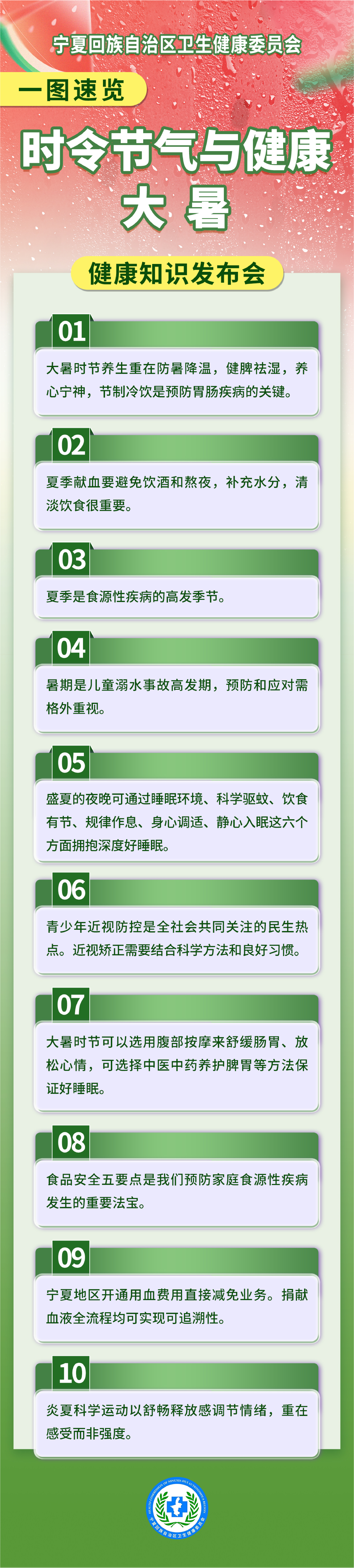 一图速览丨7月21日宁夏卫生健康委时令节气与健康(大暑)健康知识发布会