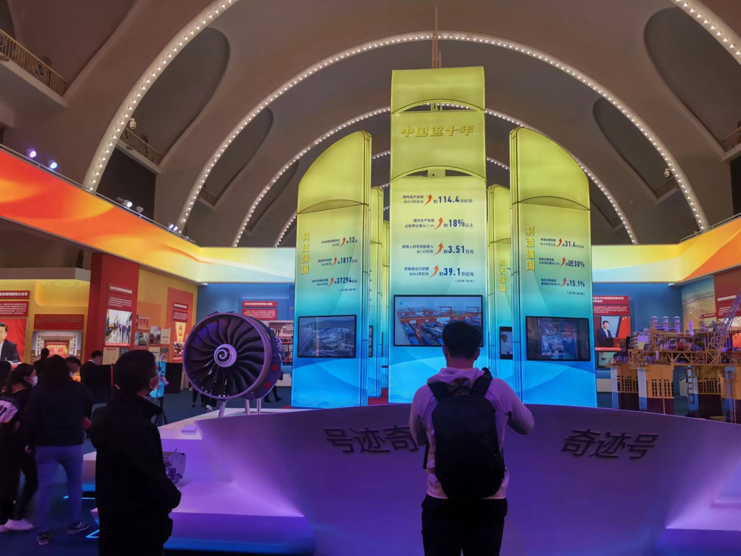 在一幅幅展板、一项项实物、一个个模拟场景前,参观人员或用手机拍照,或驻足思考,或倾听讲解员介绍。10年中,党和国家事业取得的举世瞩目的成就,让人目不暇接。