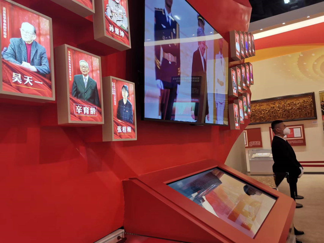 习近平总书记指出,没有全民健康,就没有全面小康。10年来,经过全党全国各族人民持续奋斗,我国实现了第一个百年奋斗目标,全面建成小康社会。历史不会忘记辛育龄、吴天一等“七一勋章”获得者所作出的贡献,在他们的照片前,参观人员步履从容。