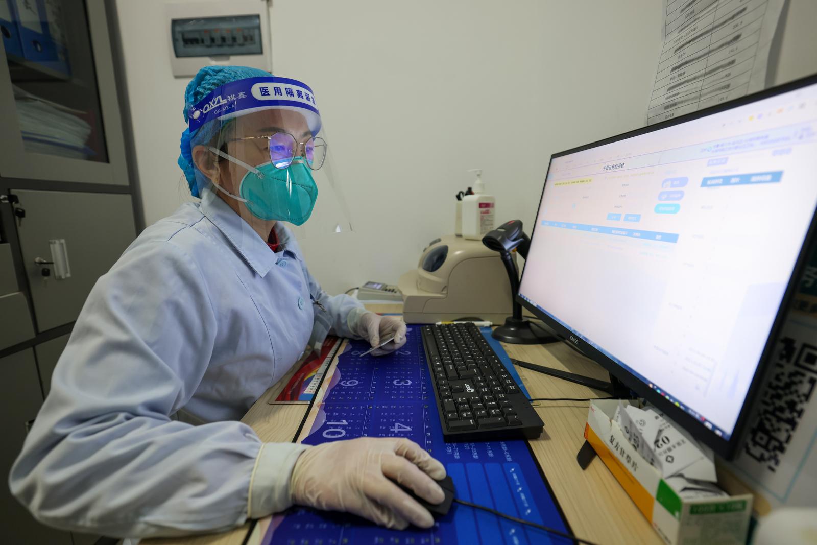 社区工作人员录入接种人员身份信息。