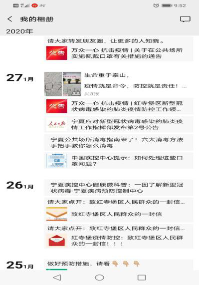 疾控人利用吃饭时间,在朋友圈及群里转发一些有关防控措施的信息,即为提示每一个人,放下盲目自信,照顾好自己和家人,出门戴口罩,回家勤洗手,打开窗户常通风,取消聚会,做好防护!对自己和家人、朋友负责!