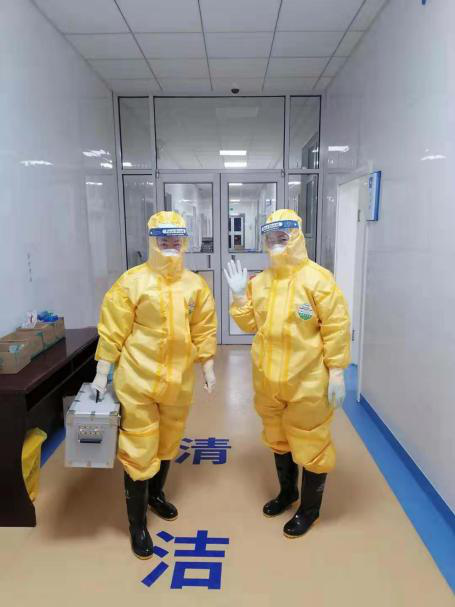 采样组是两名女同志,她们不分昼夜随时待命,将采样好的样本收集送往吴忠市疾控中心进行检测。我区第一例确诊病例就是她们第一时间进入隔离区,深夜采集,连夜送检。