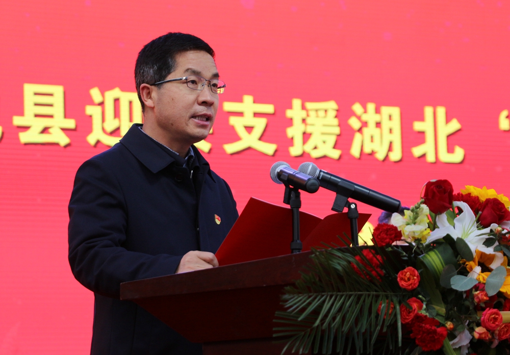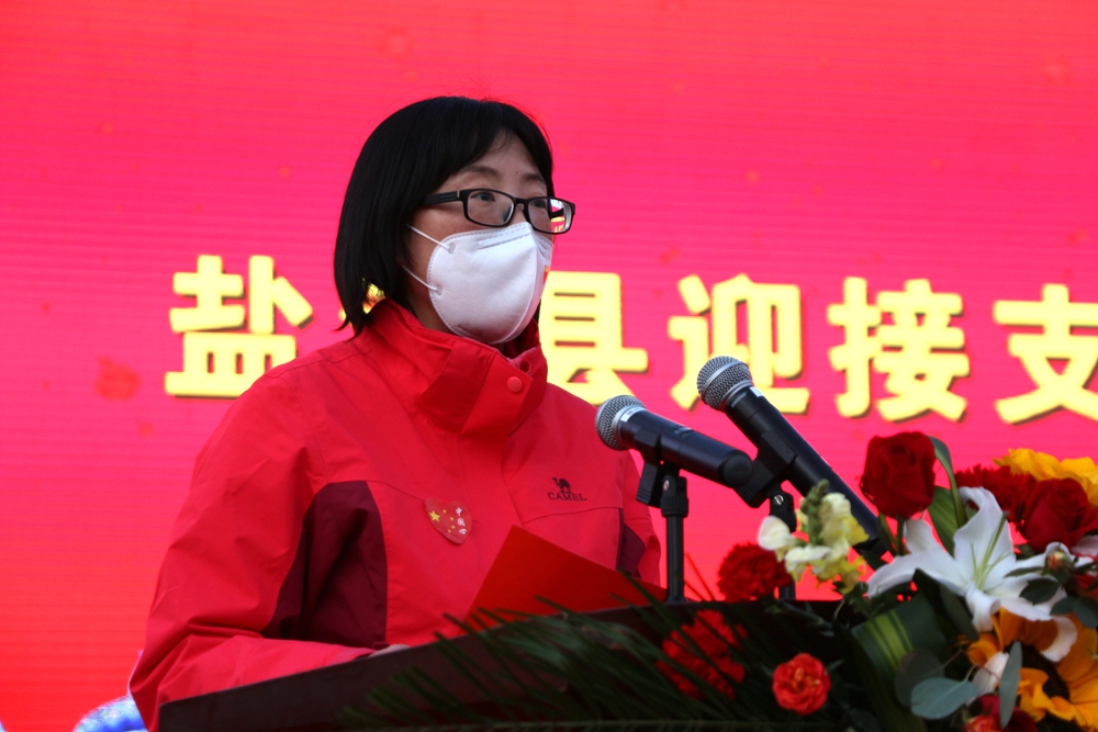 盐池县委副书记、政府县长戴培吉宣读《关于表彰2020年盐池县支援湖北战‘疫’英雄及优秀医务工作者的决定》;
