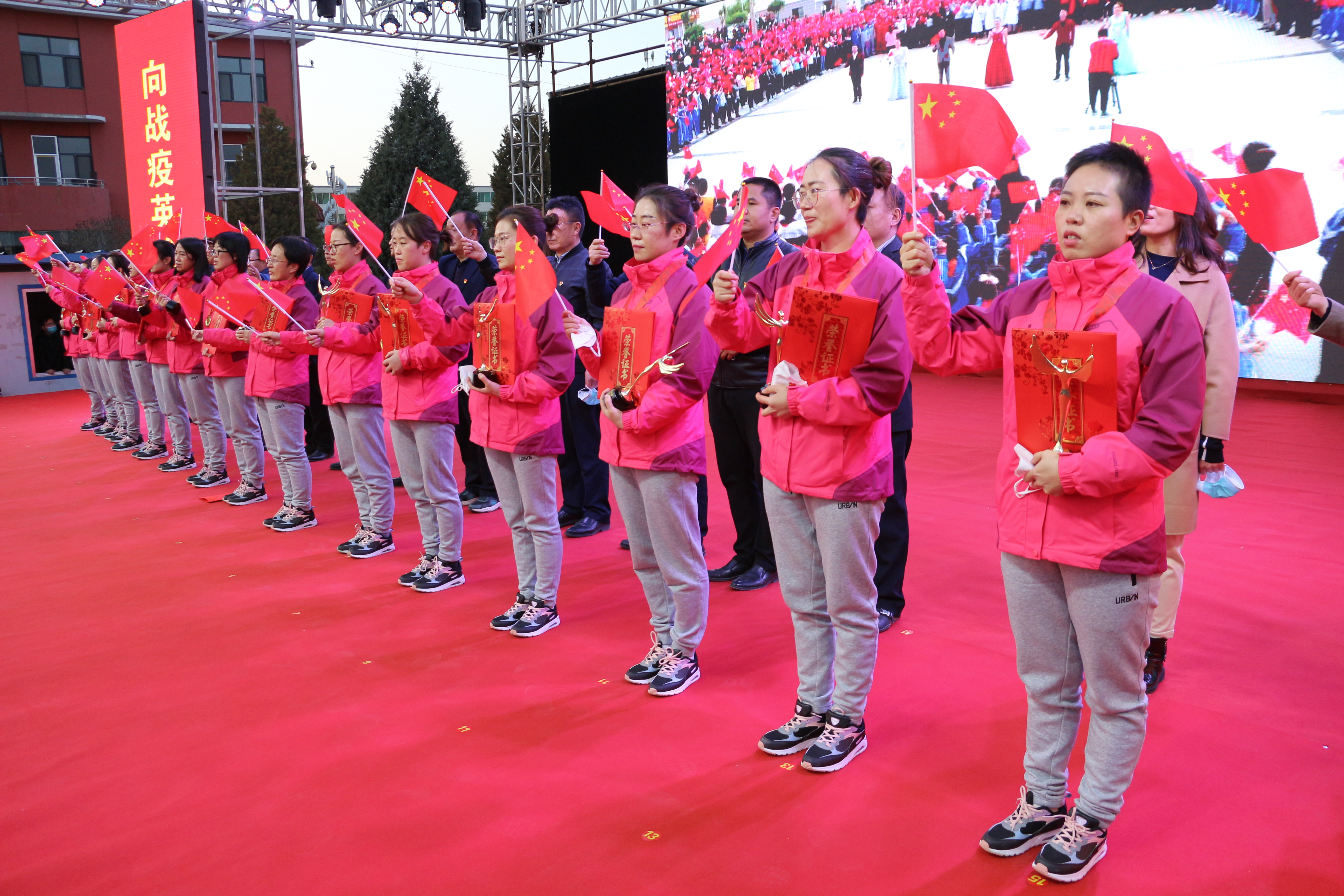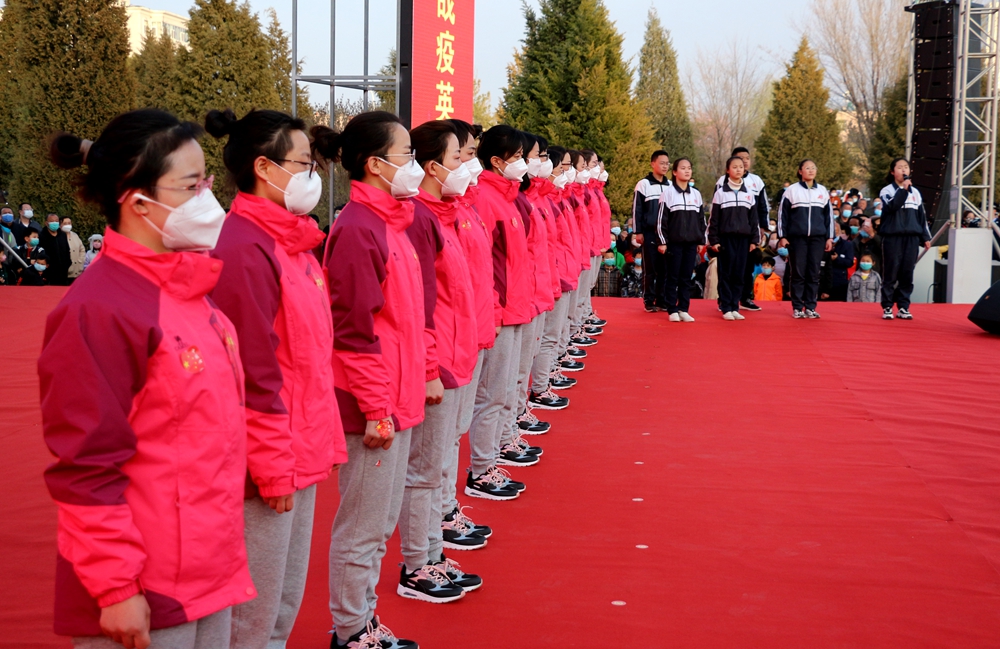 战“疫”英雄队长路霞声情并茂讲述支援湖北的深刻感受,全体队员在火线向党组织递交入党申请书,实现了“召必来,来必战,战必胜”的光荣任务。她代表全体队员谢谢17.2万父老乡亲的支持,正是因为有了身后的坚强后盾,才有她们的义无反顾、勇往直前的决心,才有她们战胜重重困难凯旋的荣光。