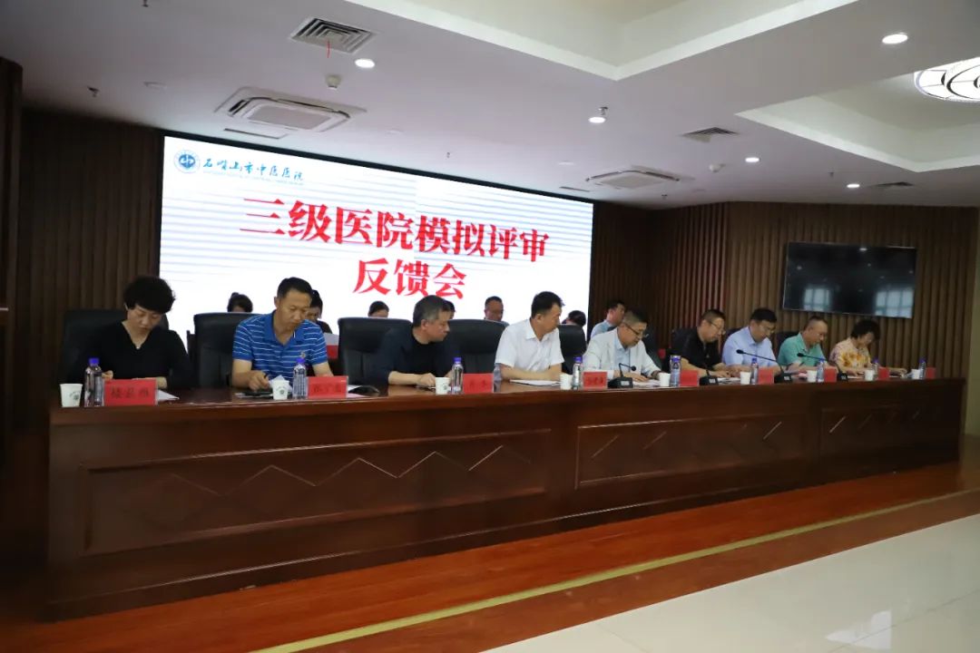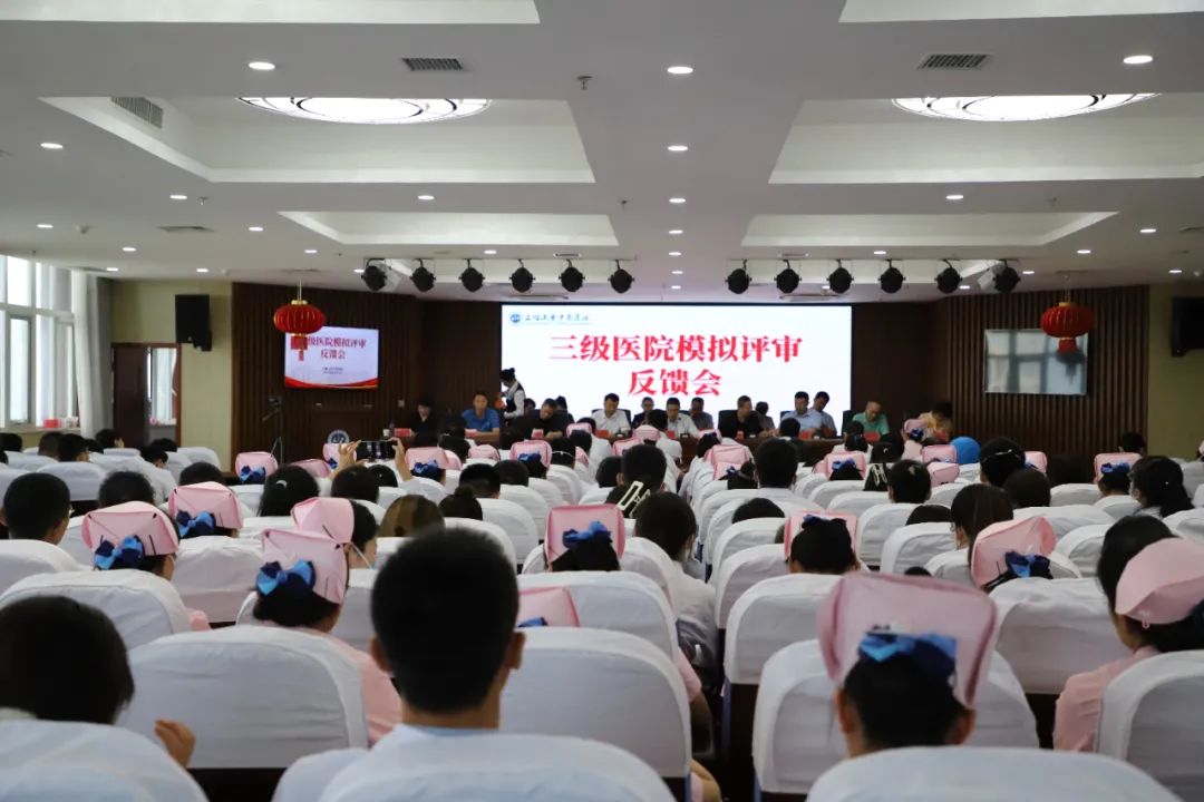6月18日下午,模拟评审工作进行反馈,自治区评审专家组,市卫生健康委四级调研员、医政科科长谭宏烨,院领导班子及全院职工参加了会议。