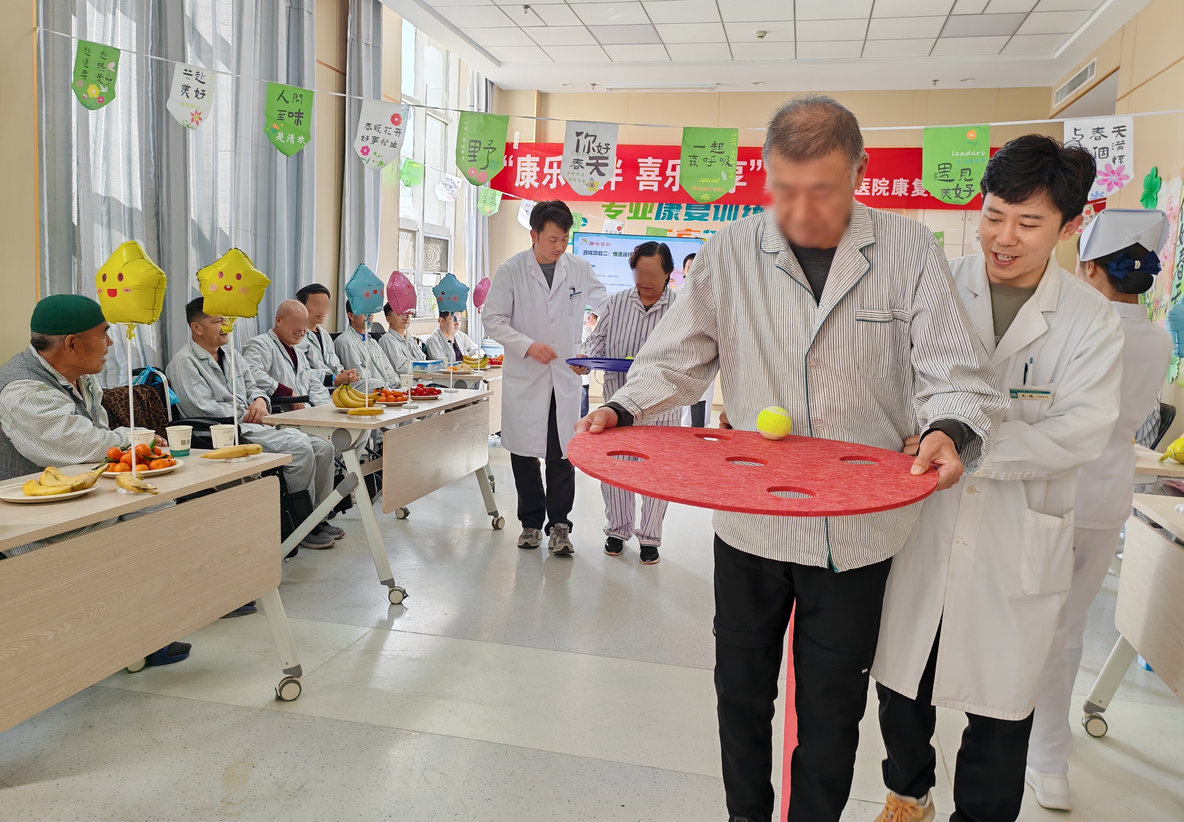 平日里满是治疗设备的康复大厅,被彩色气球、装饰挂布和欢声笑语填满。医护人员化身“游戏主持”,将精心设计的趣味项目逐一展开。患者与家属则成了最投入的“玩家”——没有冰冷的治疗设备,只有温热的互动;没有枯燥的训练,只有好玩的游戏。