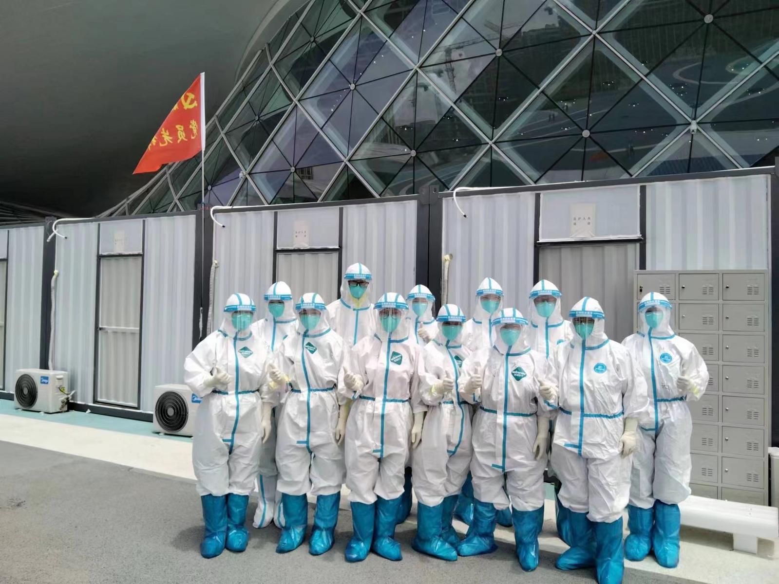 “身穿防护服,戴着N95口罩,四个小时工作结束后,里面的手术衣都是湿透的,大家都处于脱水、缺氧的症状,尽管如此,仍然没有一个人抱怨,没有一个人放弃。当看到患者配合我们做好工作,听到他们说感谢的一刻,我为我是一名医护者而自豪,为我能穿上这身防护服在这次抗疫援助工作中发光发热而骄傲!”