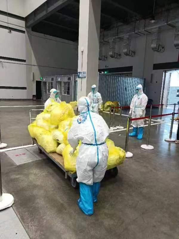 尽管如此,王彬依旧以一丝不苟、严谨负责的态度督促每位队员将院感防控做到位:从医疗队员进入方舱医院开始,王彬就从外围区域开始巡查,队员们穿脱防护服是否规范、手消是否做到位、每日健康监测有无异常,在舱内作业时,是否存在职业暴露风险,医疗废物及舱内垃圾如何处置;患者在入舱后是否有其他并发症、有无可能发生的舱内感染隐患和风险;回到驻地后,每位队员是否闭环管理、环境清洁消毒是否到等等,每个细节,她都要多看一眼,力求每日走遍方舱的每一个角落,不落下每一个细微之处。