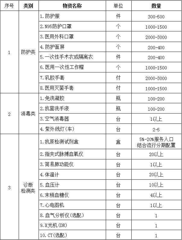 附件:1.乡镇卫生院(社区卫生服务中心)诊疗新冠病毒感染物资配置参考标准