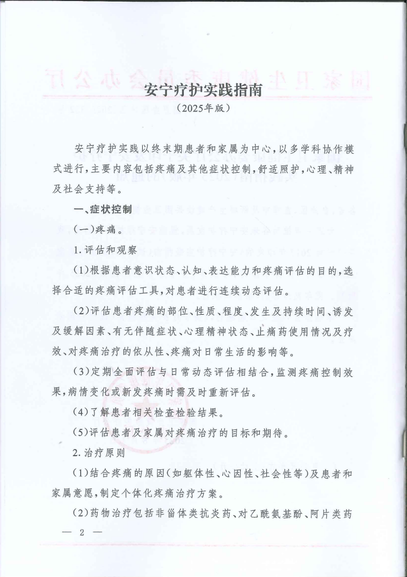 国家卫生健康委办公厅关于印发安宁疗护实践指南(2025年版)的通知