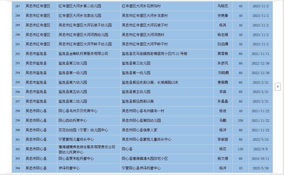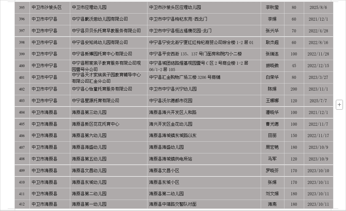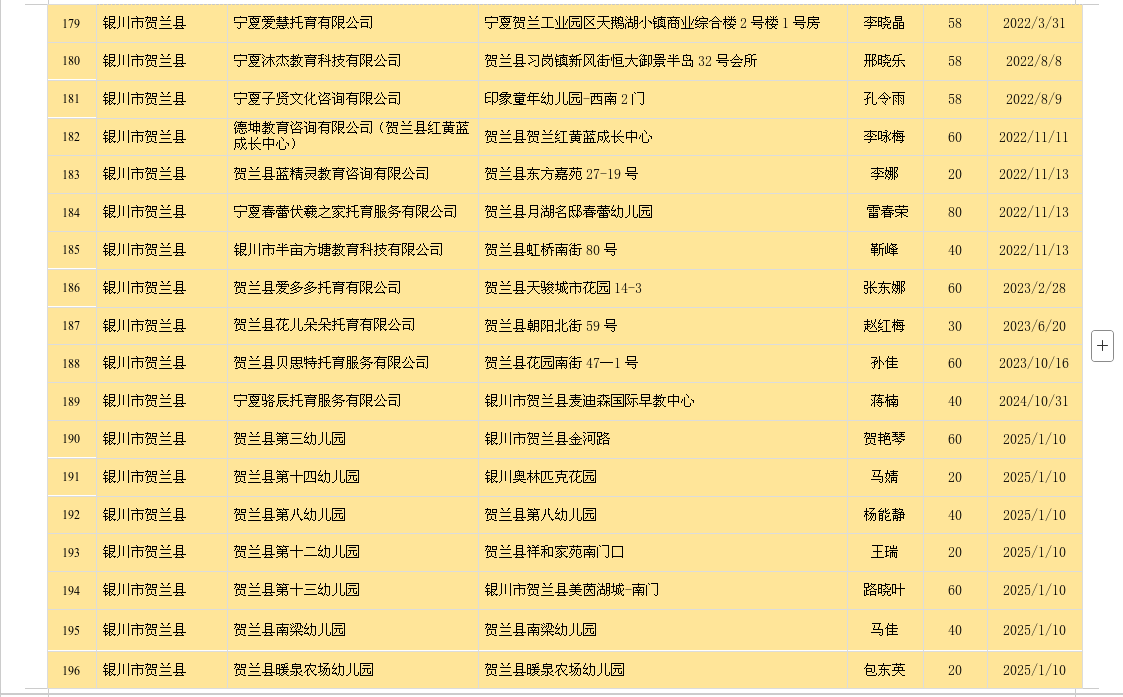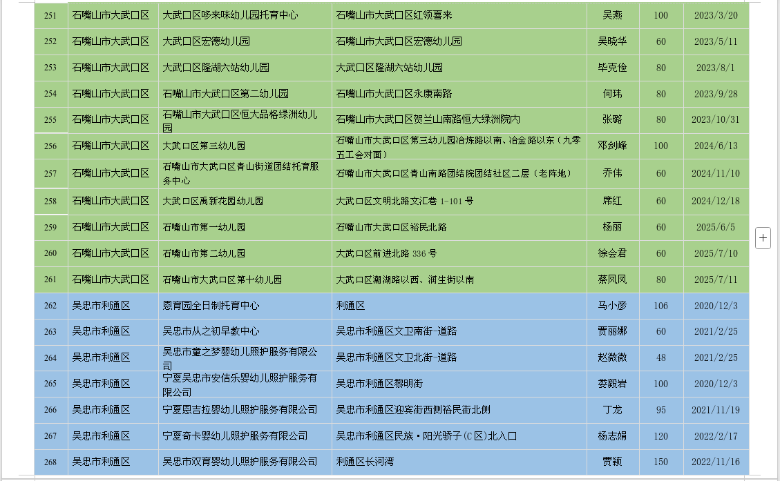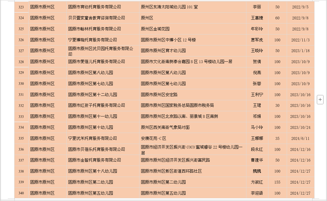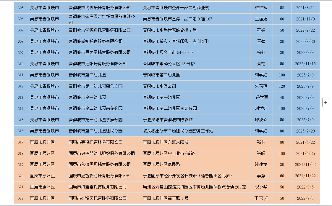 为加强托育机构管理,根据《自治区健康宁夏建设领导小组关于促进3岁以下婴幼儿照护服务发展的实施意见》(宁健组发〔2020〕3号)、《关于印发宁夏回族自治区托育机构登记和备案实施细则(试行)的通知》(宁卫规发〔2022〕2号)要求,宁夏回族自治区实行3岁以下婴幼儿托育机构备案管理制度,现将机构名单及主要信息面向社会公开。