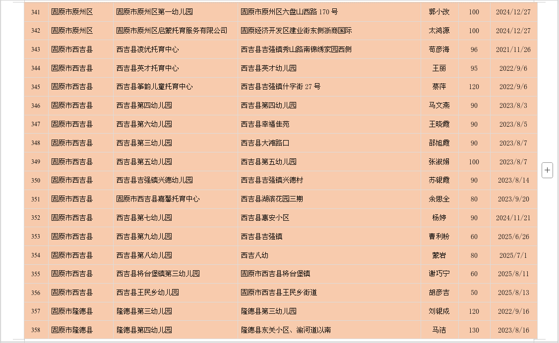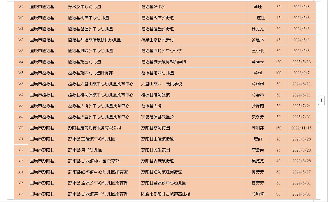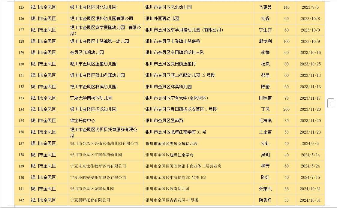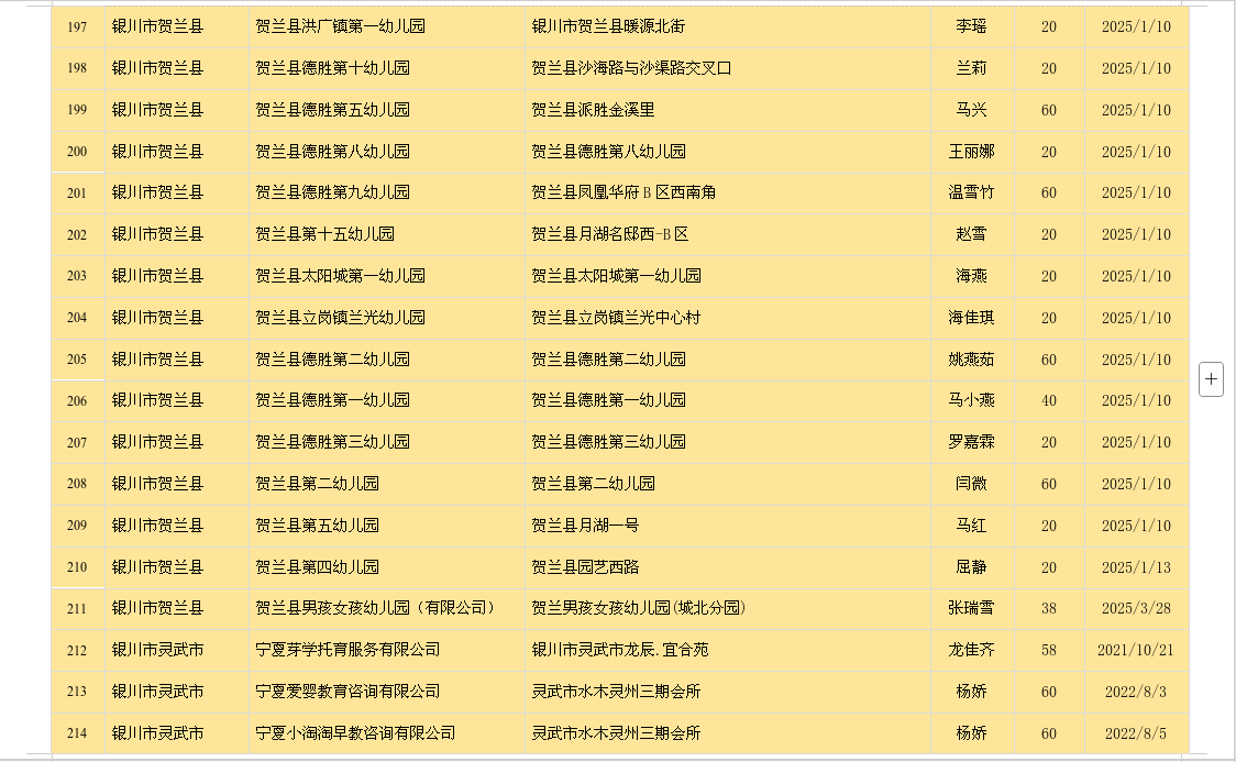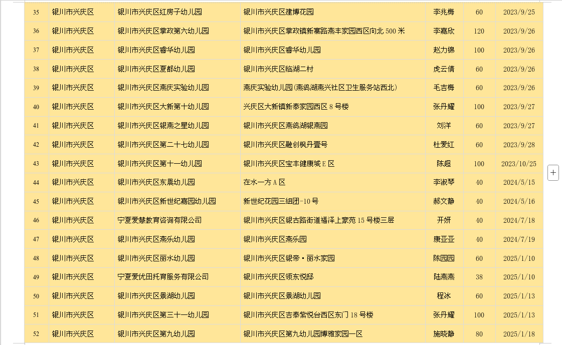 为加强托育机构管理,根据《自治区健康宁夏建设领导小组关于促进3岁以下婴幼儿照护服务发展的实施意见》(宁健组发〔2020〕3号)、《关于印发宁夏回族自治区托育机构登记和备案实施细则(试行)的通知》(宁卫规发〔2022〕2号)要求,宁夏回族自治区实行3岁以下婴幼儿托育机构备案管理制度,现将机构名单及主要信息面向社会公开。