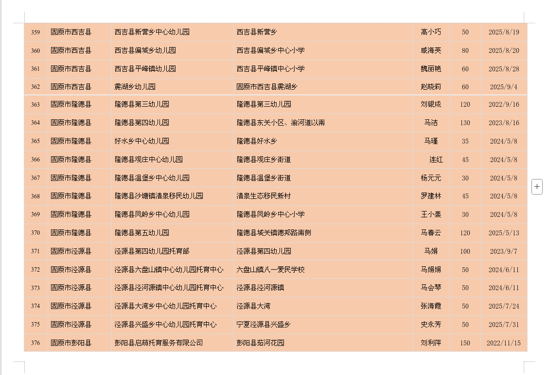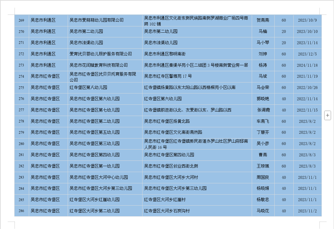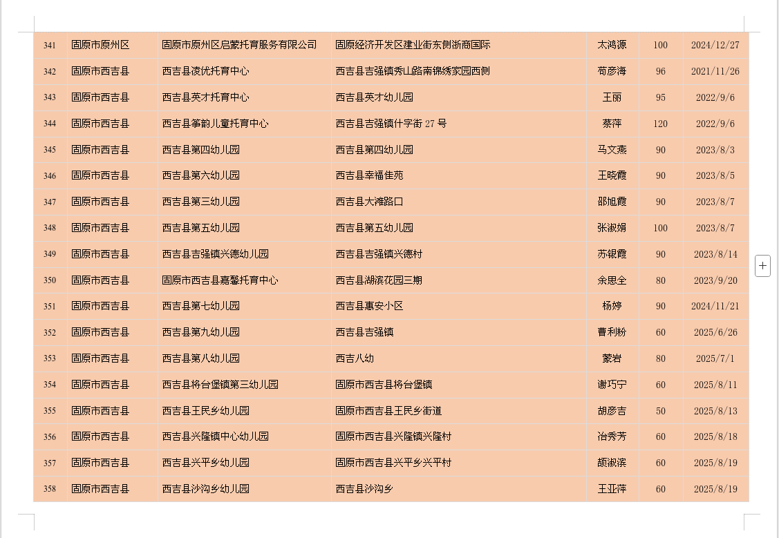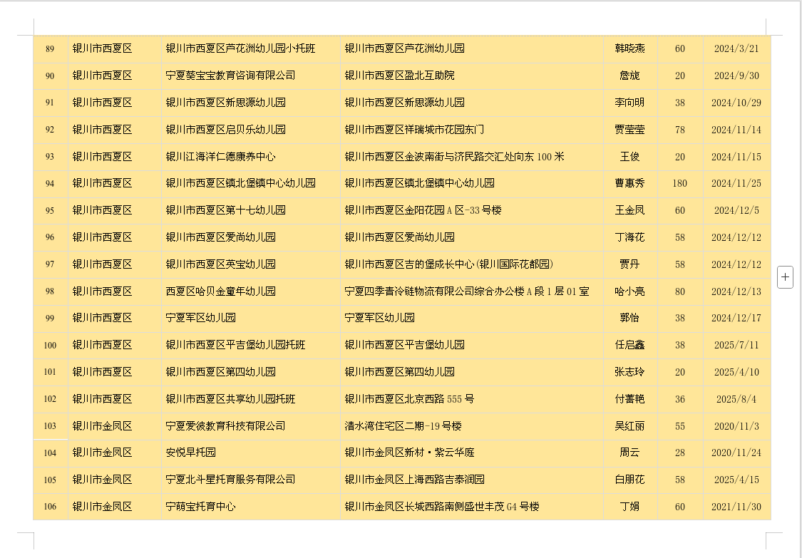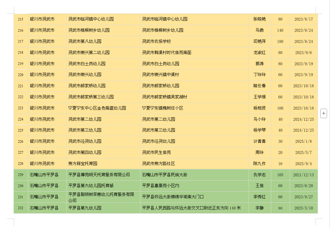 为加强托育机构管理,根据《自治区健康宁夏建设领导小组关于促进3岁以下婴幼儿照护服务发展的实施意见》(宁健组发〔2020〕3号)、《关于印发宁夏回族自治区托育机构登记和备案实施细则(试行)的通知》(宁卫规发〔2022〕2号)要求,宁夏回族自治区实行3岁以下婴幼儿托育机构备案管理制度,现将机构名单及主要信息面向社会公开。
