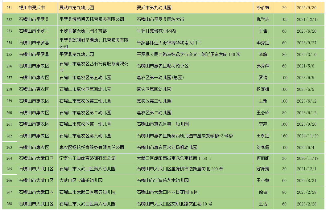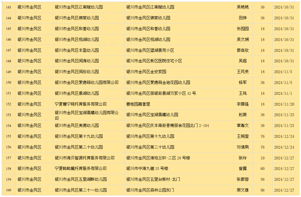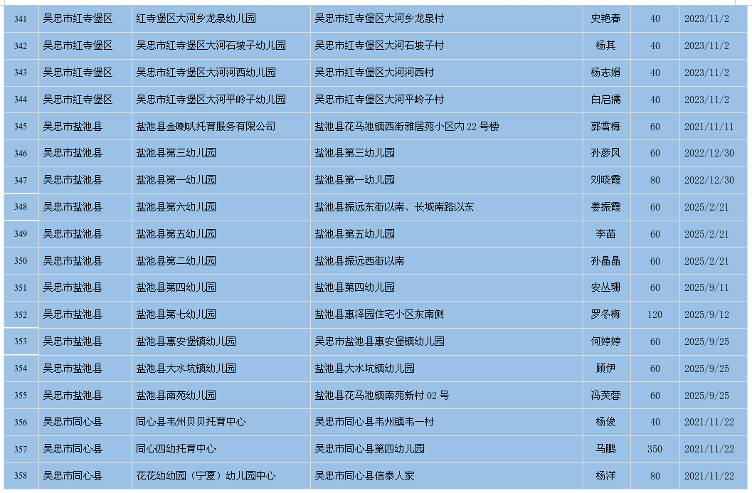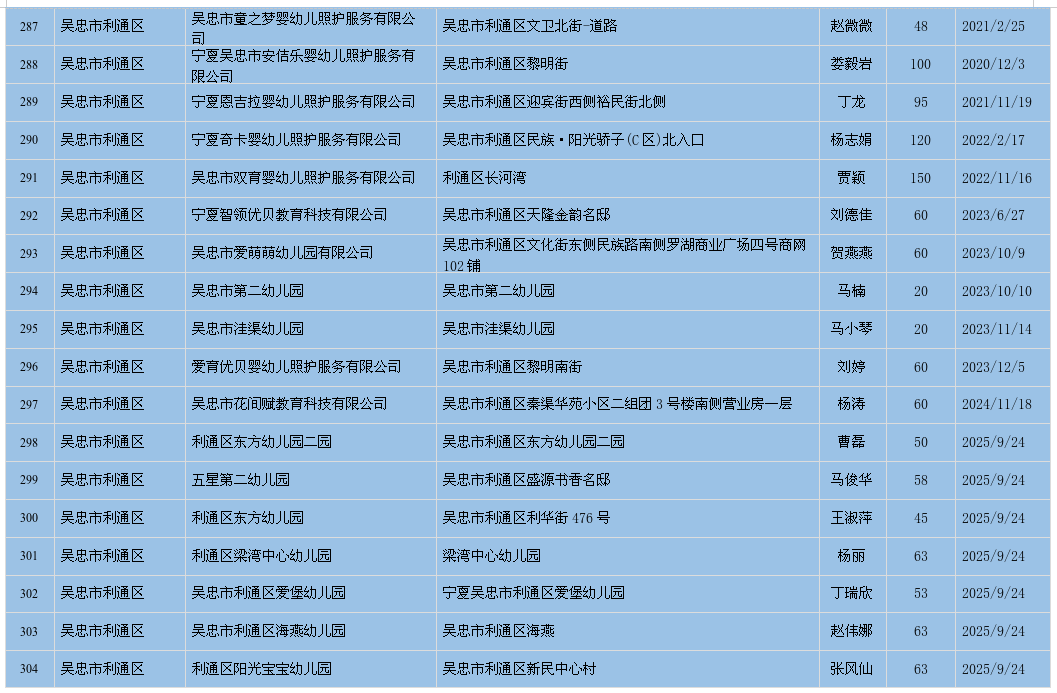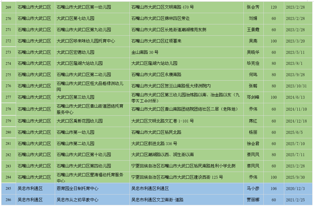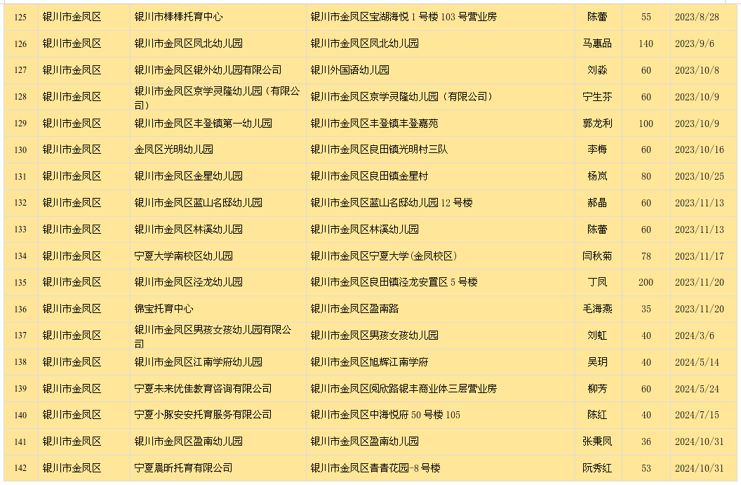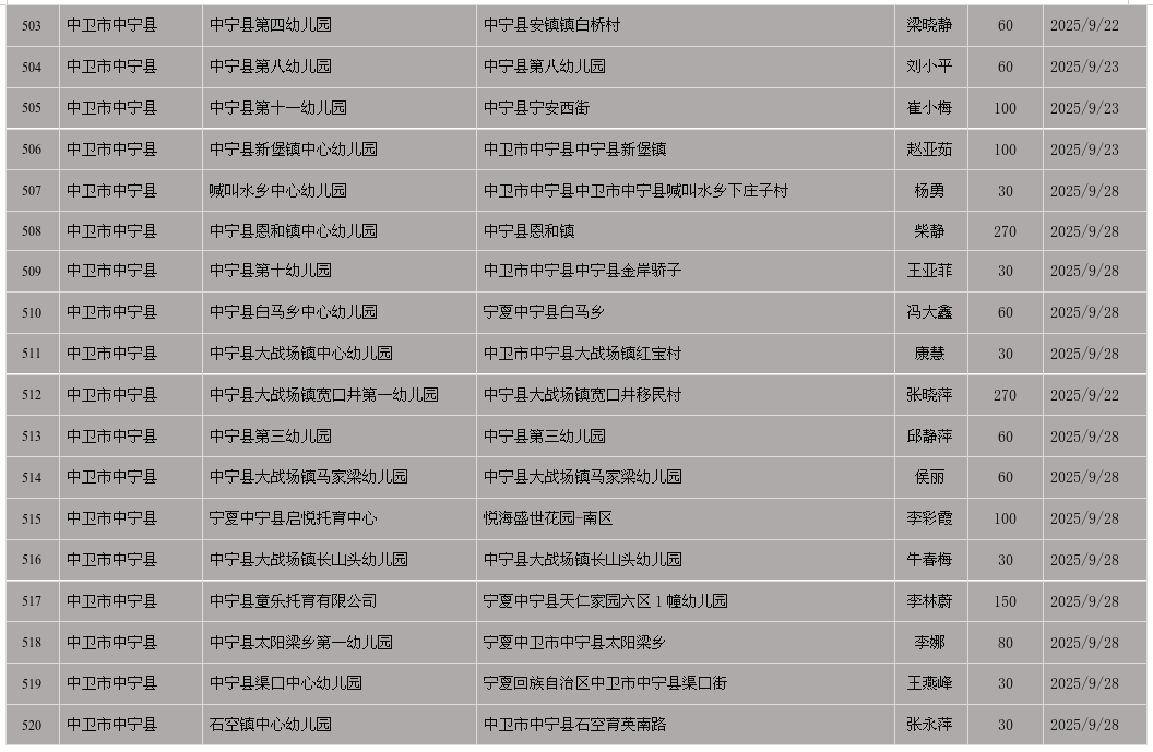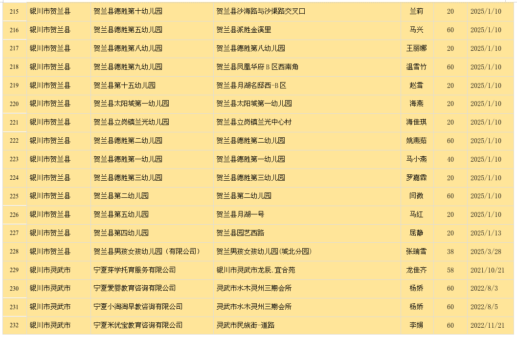 为加强托育机构管理,根据《自治区健康宁夏建设领导小组关于促进3岁以下婴幼儿照护服务发展的实施意见》(宁健组发〔2020〕3号)、《关于印发宁夏回族自治区托育机构登记和备案实施细则(试行)的通知》(宁卫规发〔2022〕2号)要求,宁夏回族自治区实行3岁以下婴幼儿托育机构备案管理制度,现将机构名单及主要信息面向社会公开。