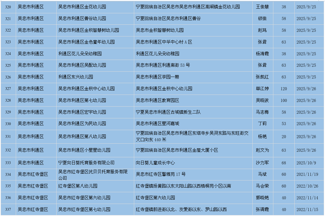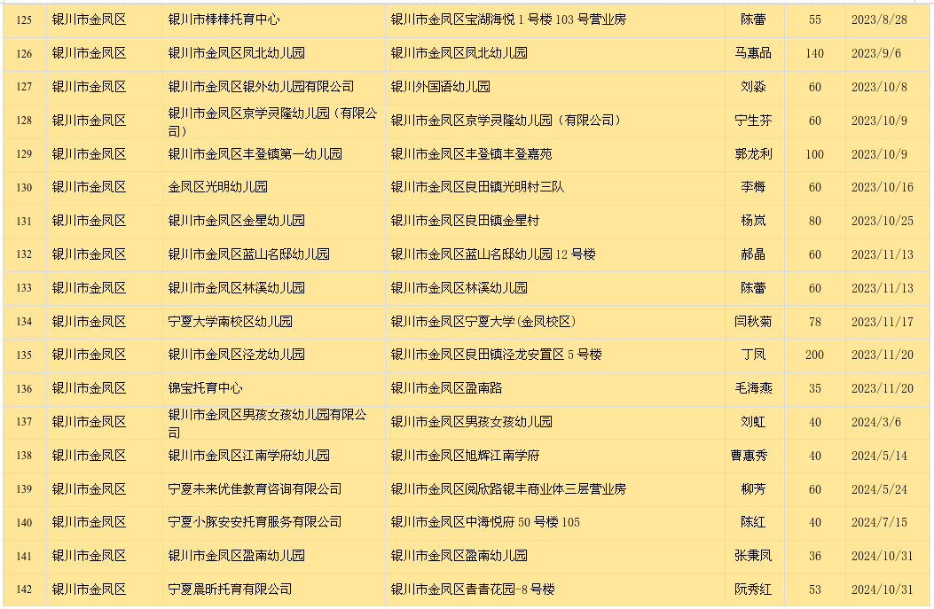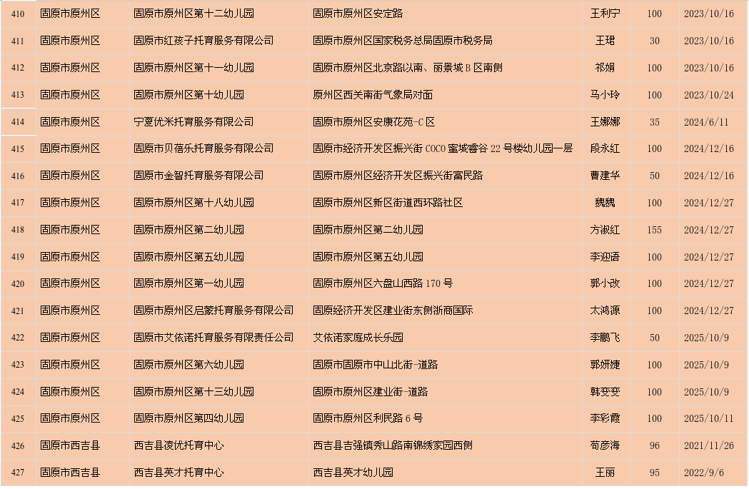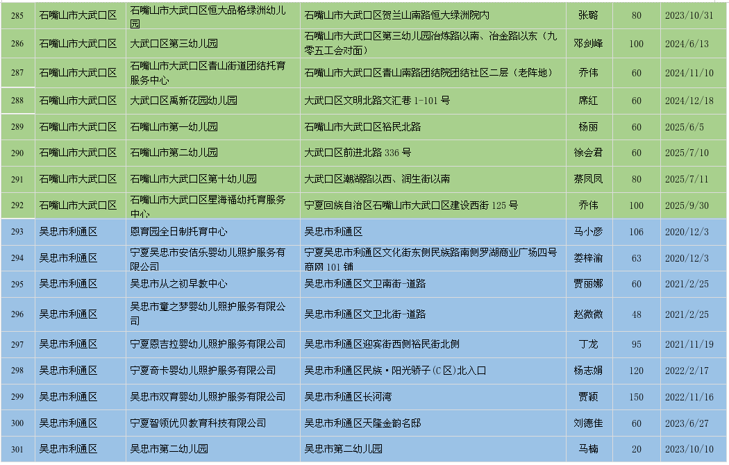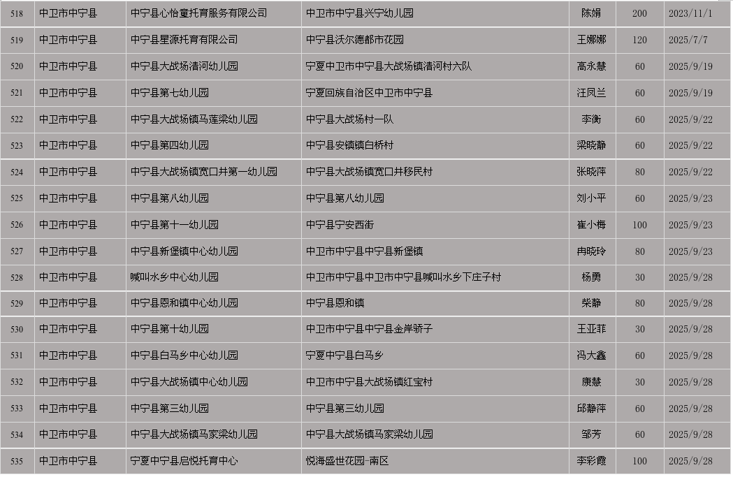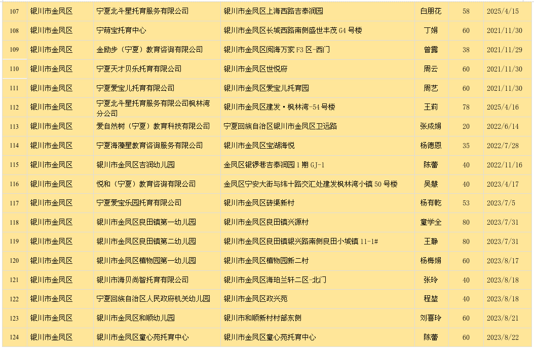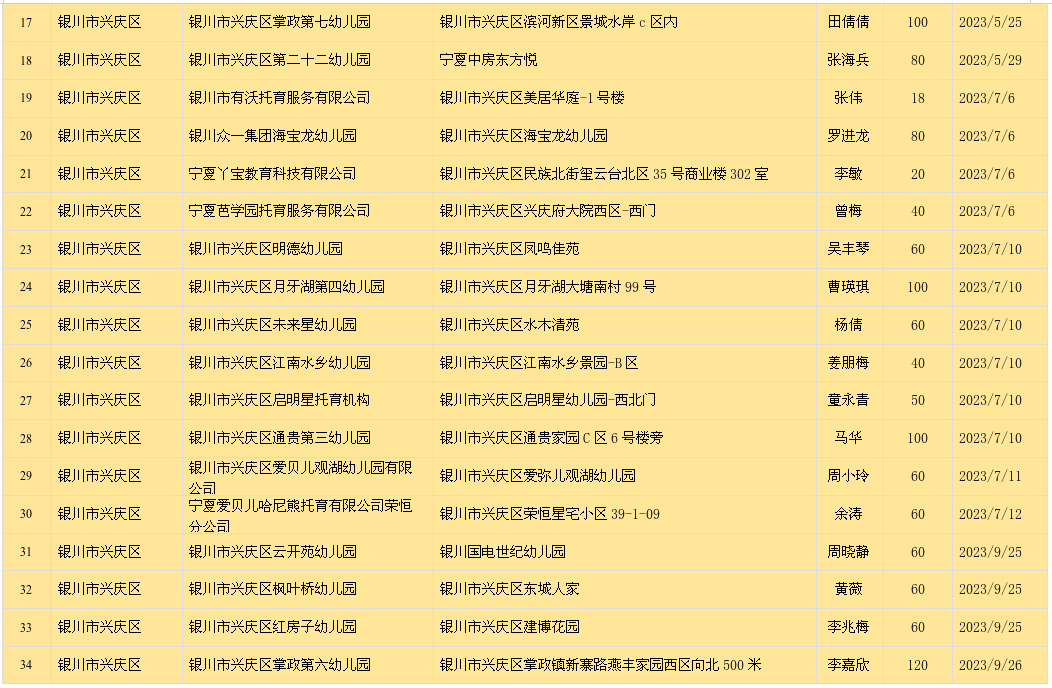 为加强托育机构管理,根据《自治区健康宁夏建设领导小组关于促进3岁以下婴幼儿照护服务发展的实施意见》(宁健组发〔2020〕3号)、《关于印发宁夏回族自治区托育机构登记和备案实施细则(试行)的通知》(宁卫规发〔2022〕2号)要求,宁夏回族自治区实行3岁以下婴幼儿托育机构备案管理制度,现将机构名单及主要信息面向社会公开。