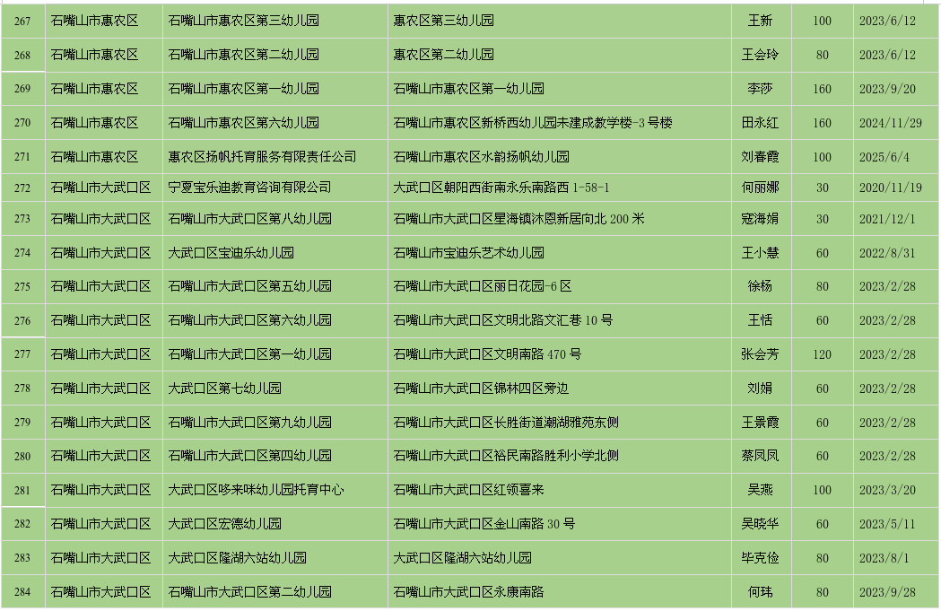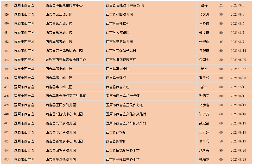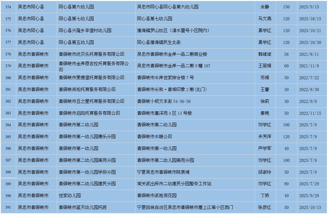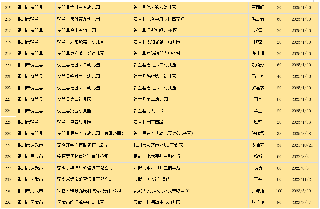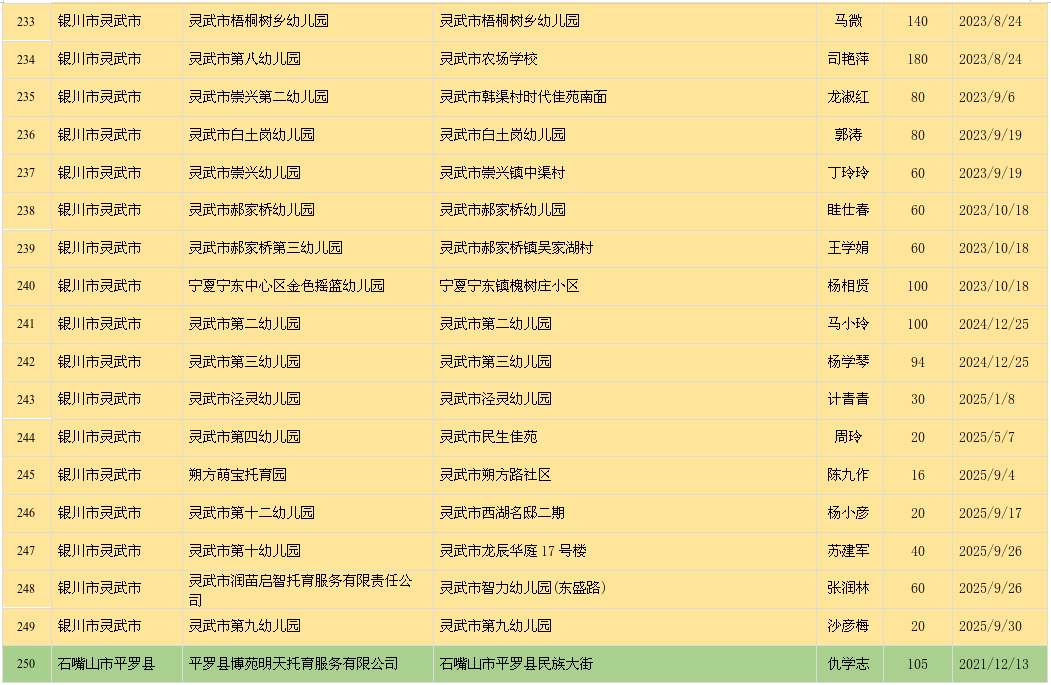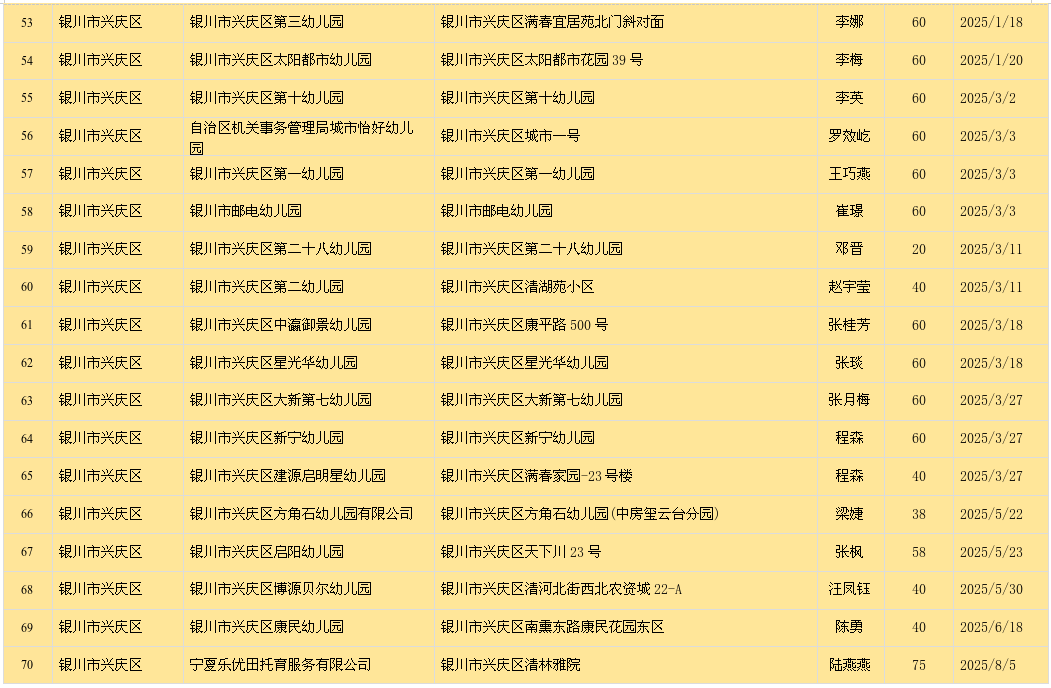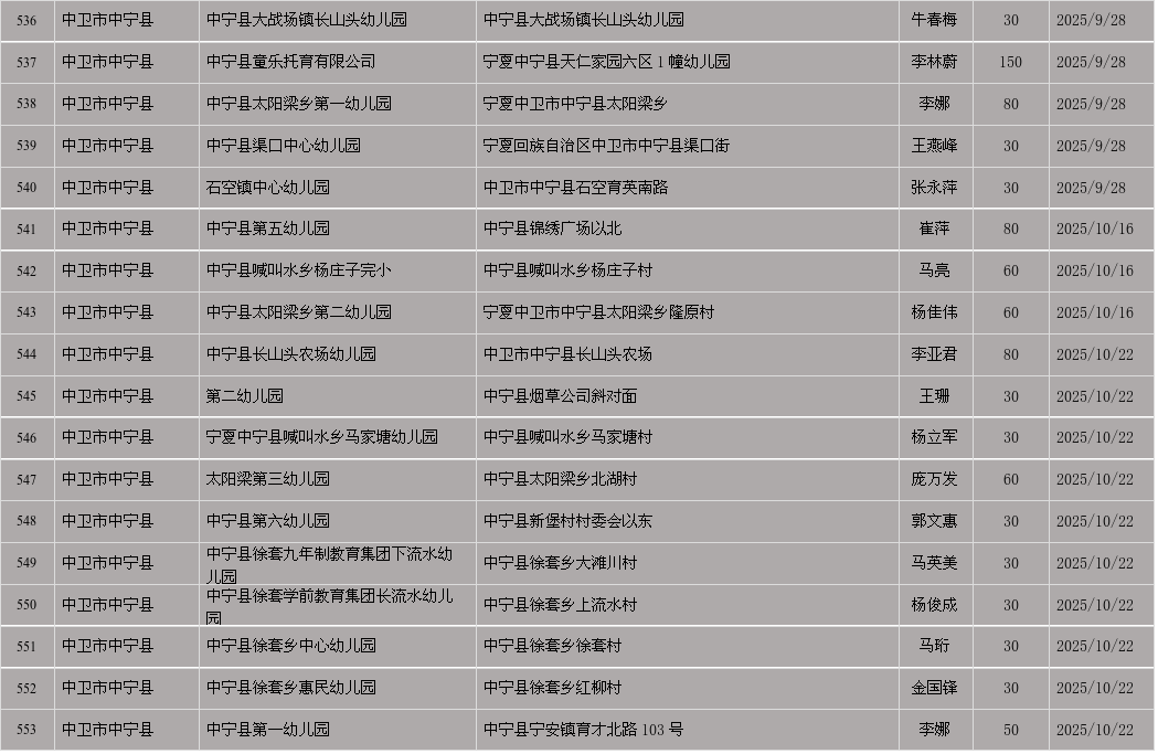 为加强托育机构管理,根据《自治区健康宁夏建设领导小组关于促进3岁以下婴幼儿照护服务发展的实施意见》(宁健组发〔2020〕3号)、《关于印发宁夏回族自治区托育机构登记和备案实施细则(试行)的通知》(宁卫规发〔2022〕2号)要求,宁夏回族自治区实行3岁以下婴幼儿托育机构备案管理制度,现将机构名单及主要信息面向社会公开。