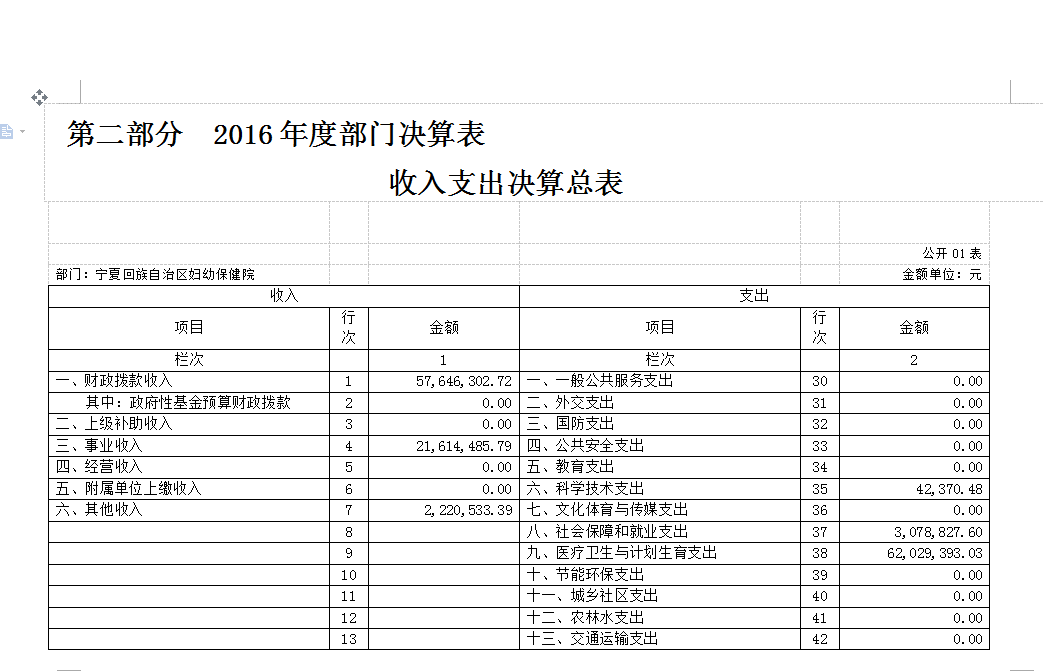 一、关于宁夏回族自治区妇幼保健院2016年度收入支出决算总体情况说明