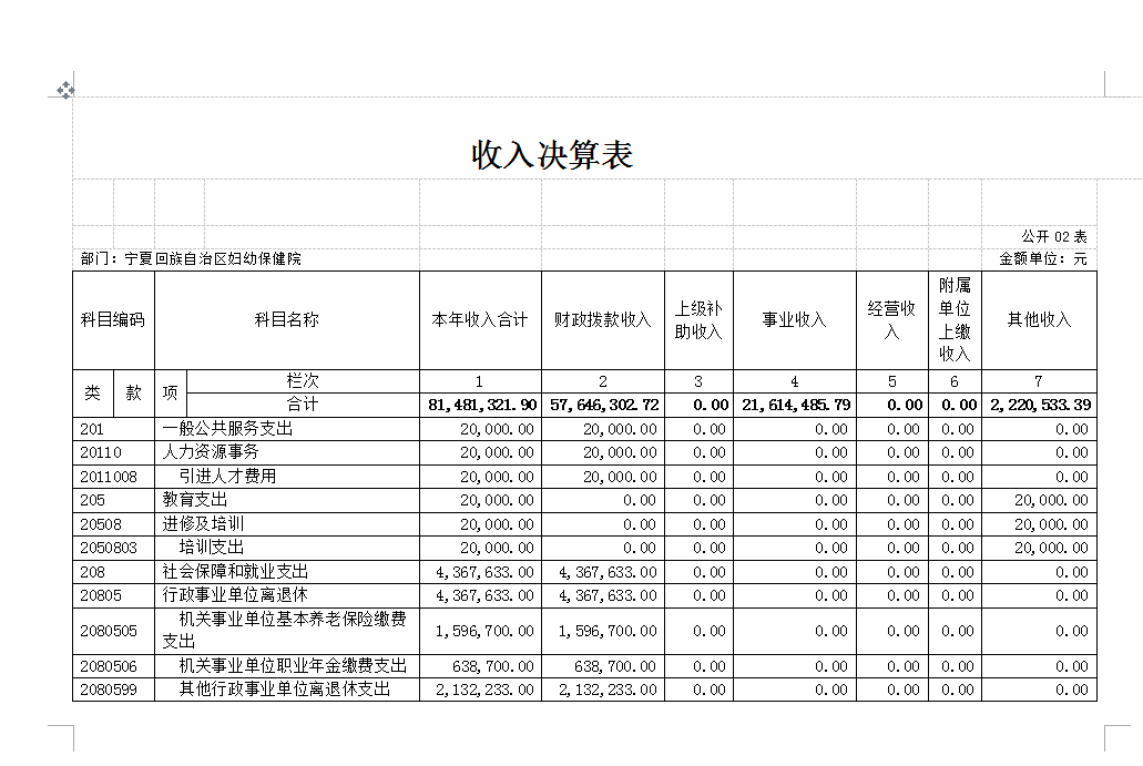 二、关于宁夏回族自治区妇幼保健院2016年度收入决算情况说明