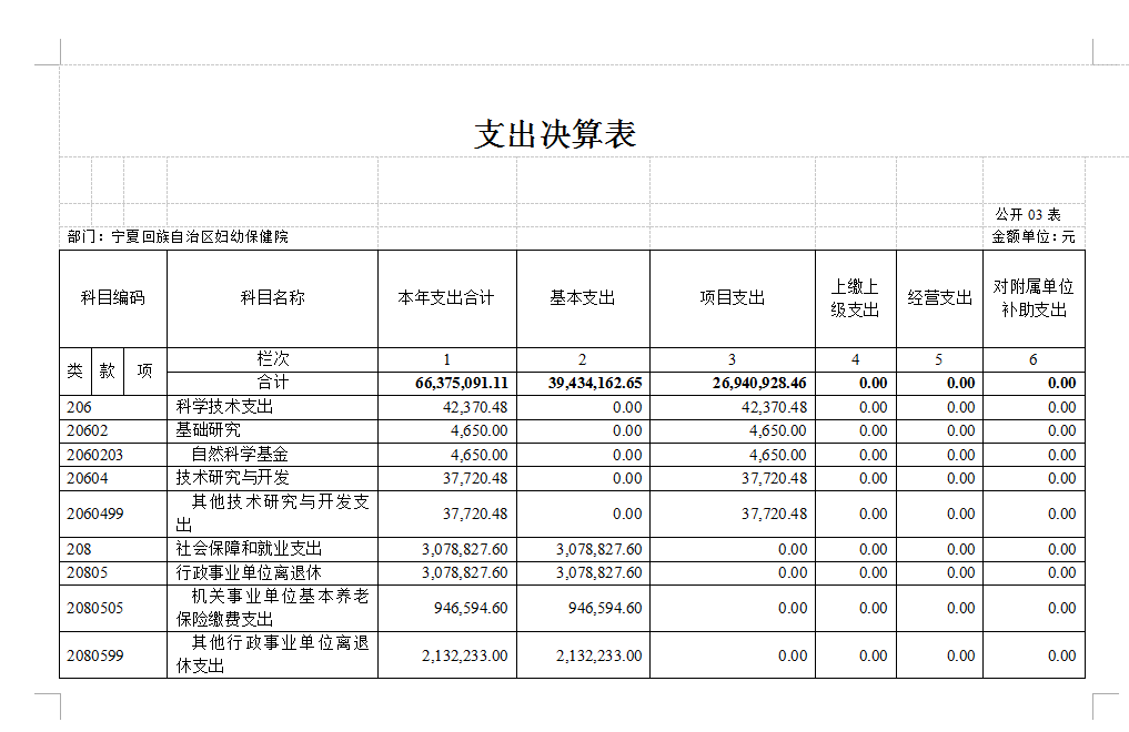 1、基本支出。用于保障宁夏回族自治区妇幼保健院正常运转的日常支出,包括基本工资、津贴补贴等人员经费以及办公费、印刷费、水电费、办公设备购置等日常公用经费。