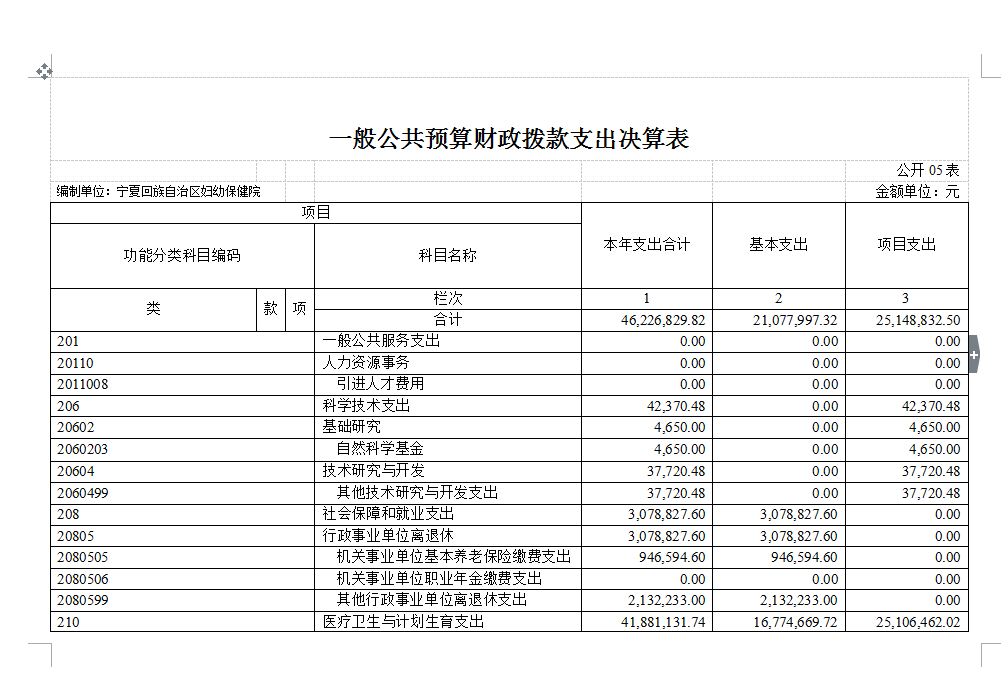2、项目支出。是用于保障宁夏回族自治区妇幼保健院完成重大公共卫生专项项目中期规划或自治区政府、党委确定的重点工作任务,用于专项业务工作的经费支出。