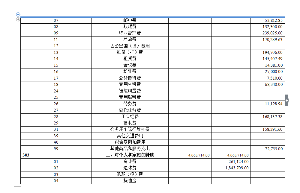 3、对个人和家庭的补助4,063,714.00 元,较2016年度年初预算数1,435,900.00元增加2,627,814.00 元,增长183%,主要原因是增加了工作人员的采暖补贴和购房补贴及离休人员离休费;较2015年决算数5,479,465.97元减少1,415,751.97元,降幅26%。