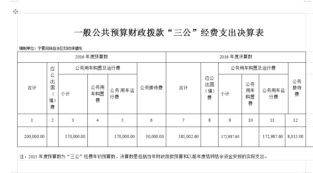七、关于宁夏回族自治区妇幼保健院2016年度一般公共预算财政拨款“三公”经费支出决算情况说明