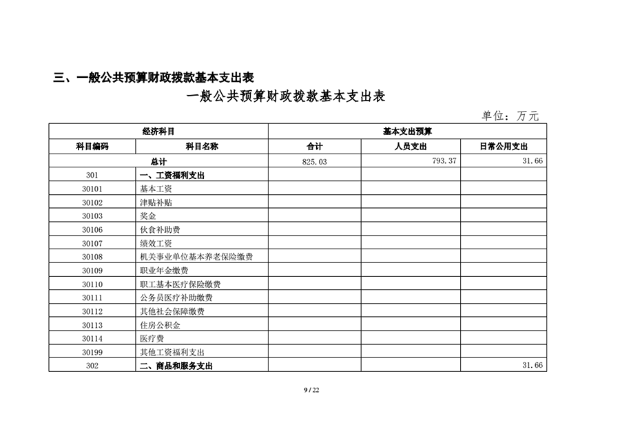 三、一般公共预算基本支出表