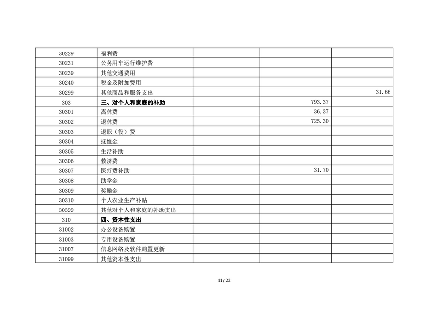 人员经费793.37万元,包括离休费36.37万元、退休费725.30万元、退休人员医疗补助31.70万元。
