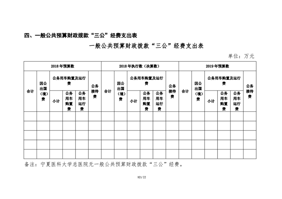 宁夏医科大学总医院为差额拨款事业单位,无机关运行经费。