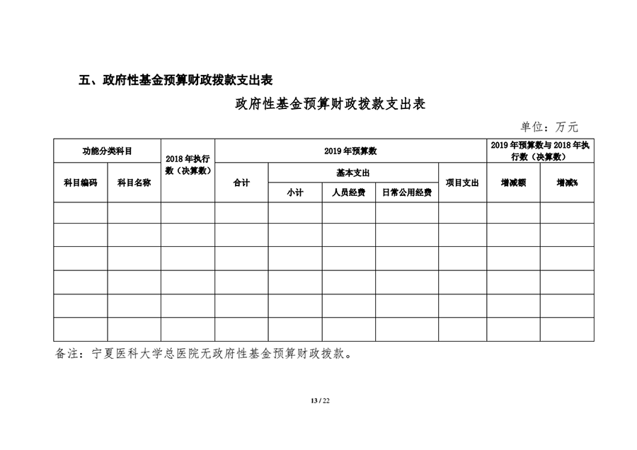 宁夏医科大学总医院2019年无政府性基金预算财政拨款收支。