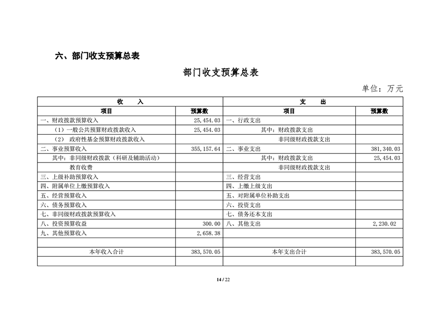 六、部门收支总表