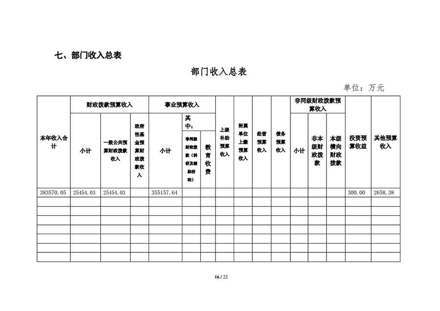 七、部门收入总表