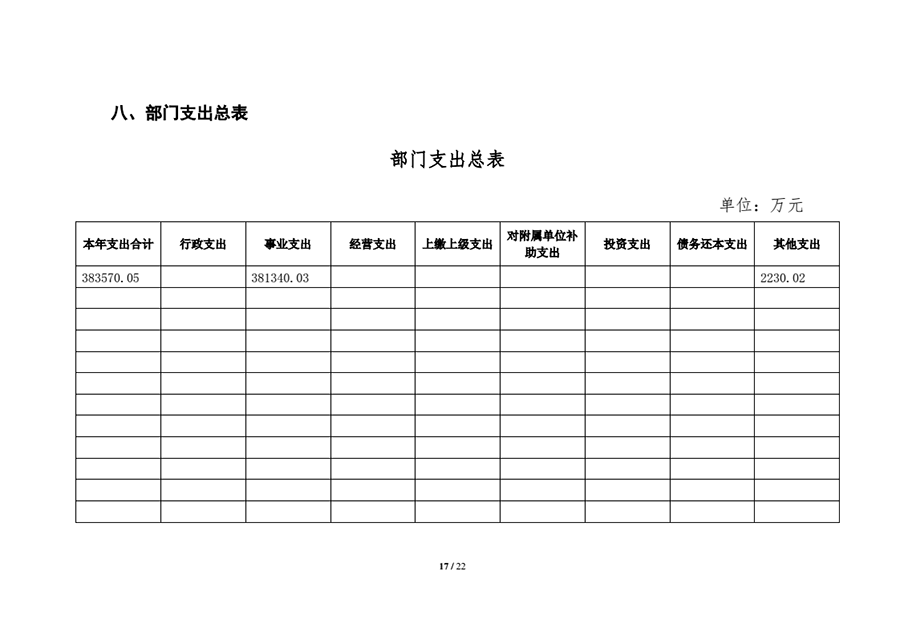 本年支出包括:事业支出381,340.03万元,占 99.42%;其他支出2,230.02万元,占0.58%。