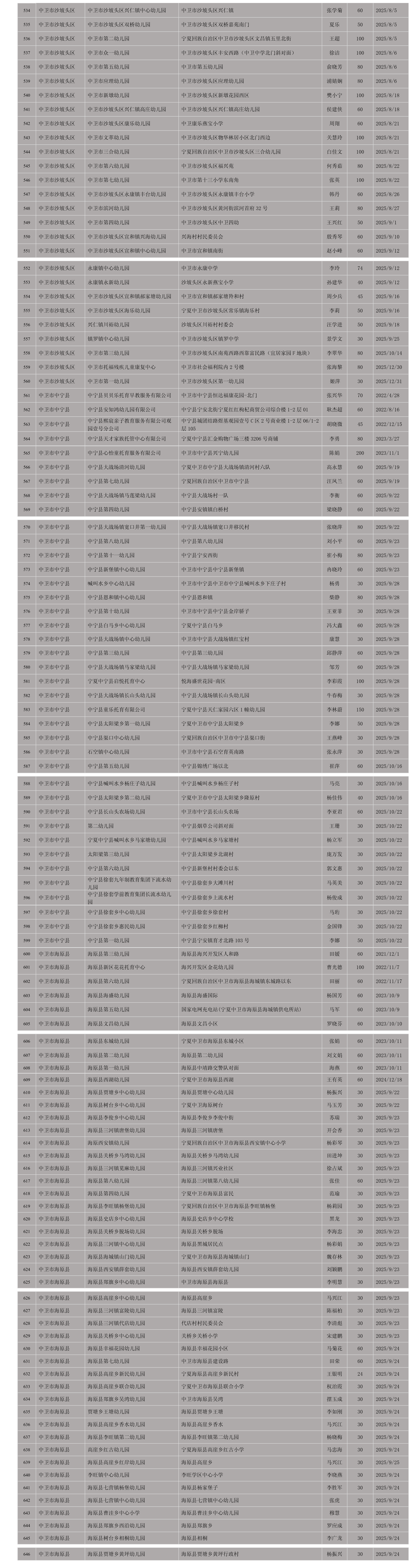 宁夏回族自治区备案托育机构信息公开
