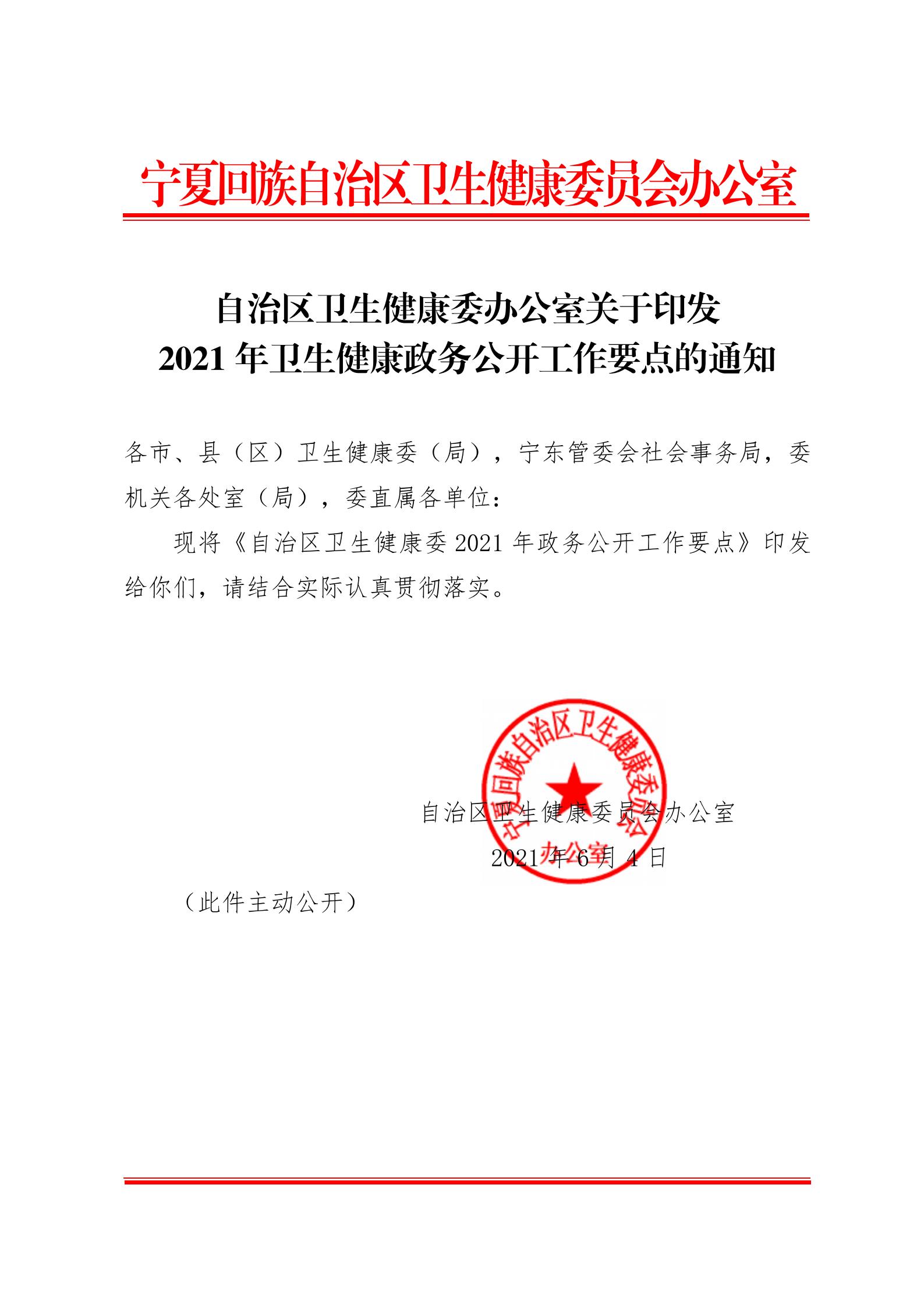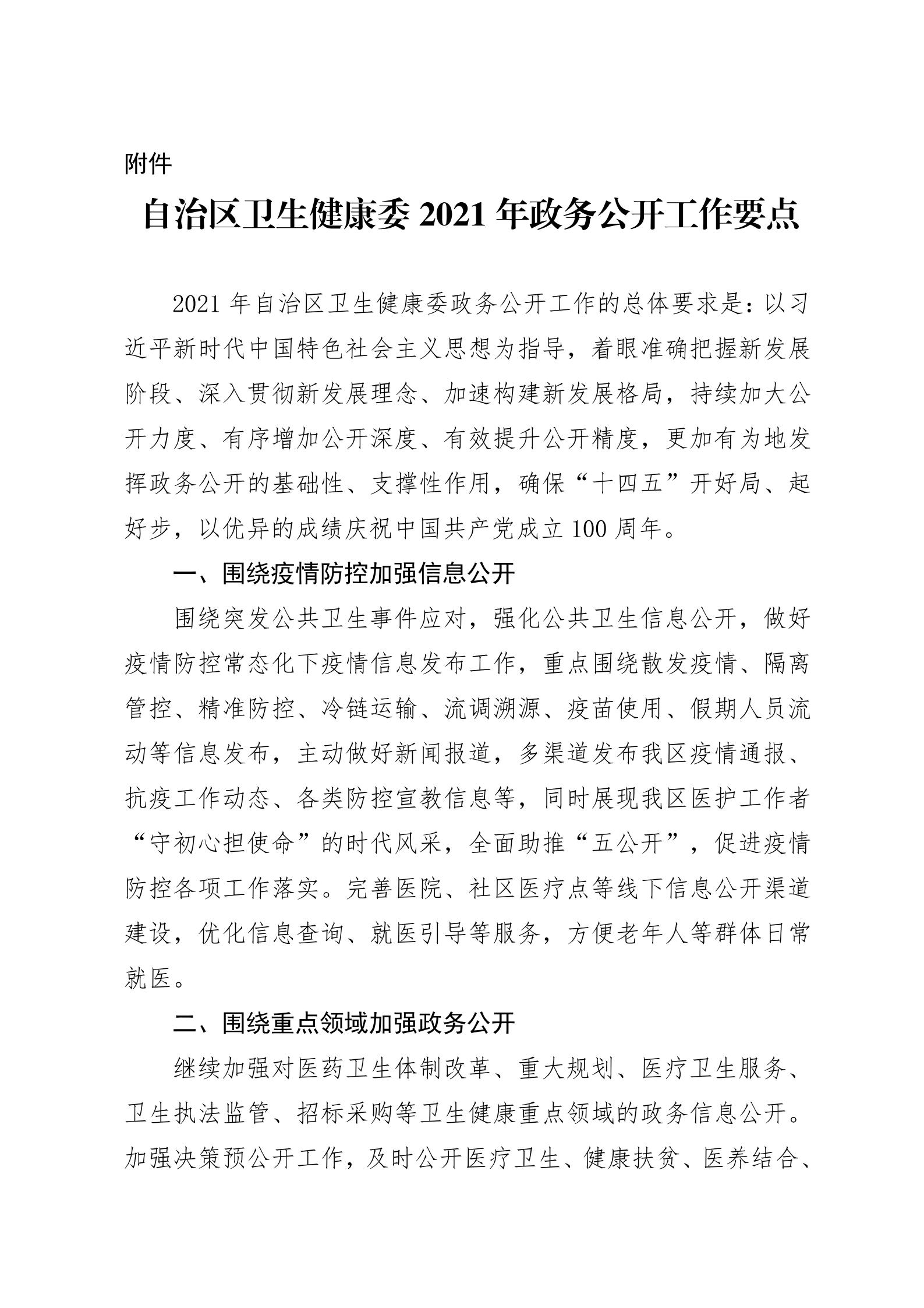 自治区卫生健康委办公室关于印发自治区卫生健康委2021年政务公开工作要点的通知