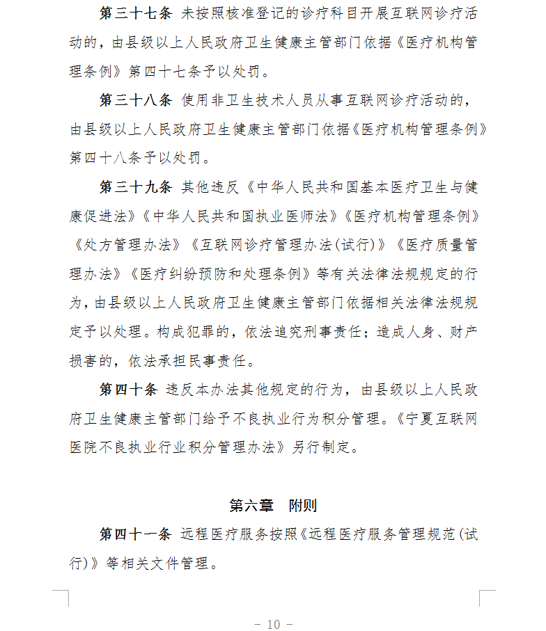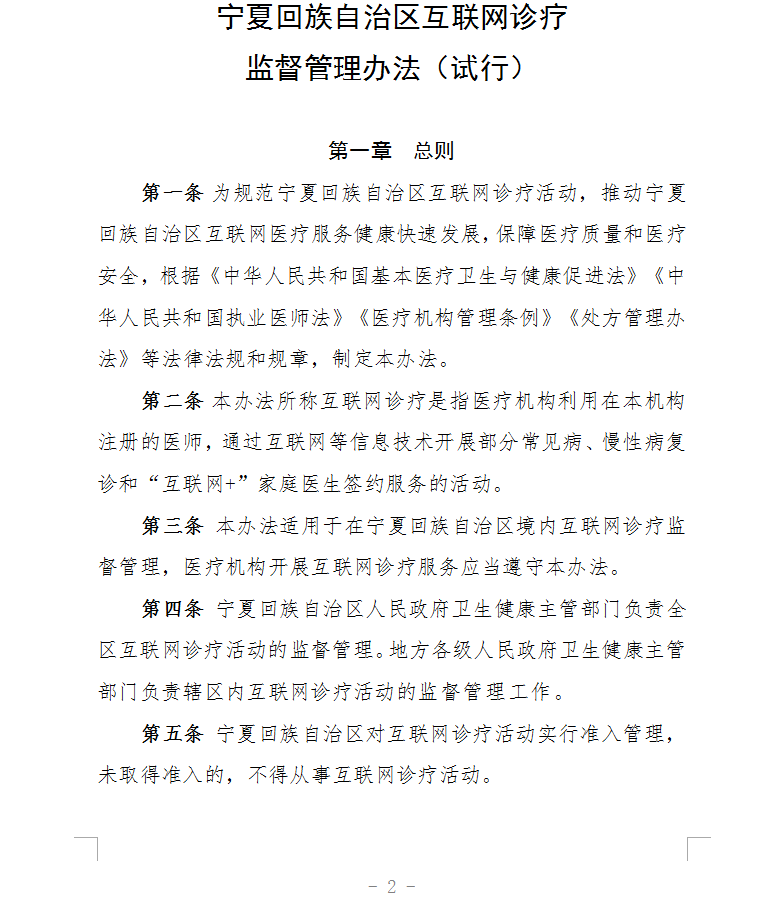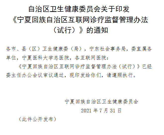 自治区卫生健康委员会关于印发 《宁夏回族自治区互联网诊疗监督管理办法(试行)》的通知