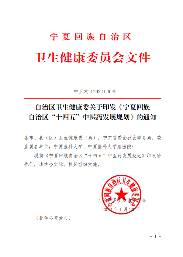 自治区卫生健康委关于印发《宁夏回族自治区“十四五”中医药发展规划》的通知