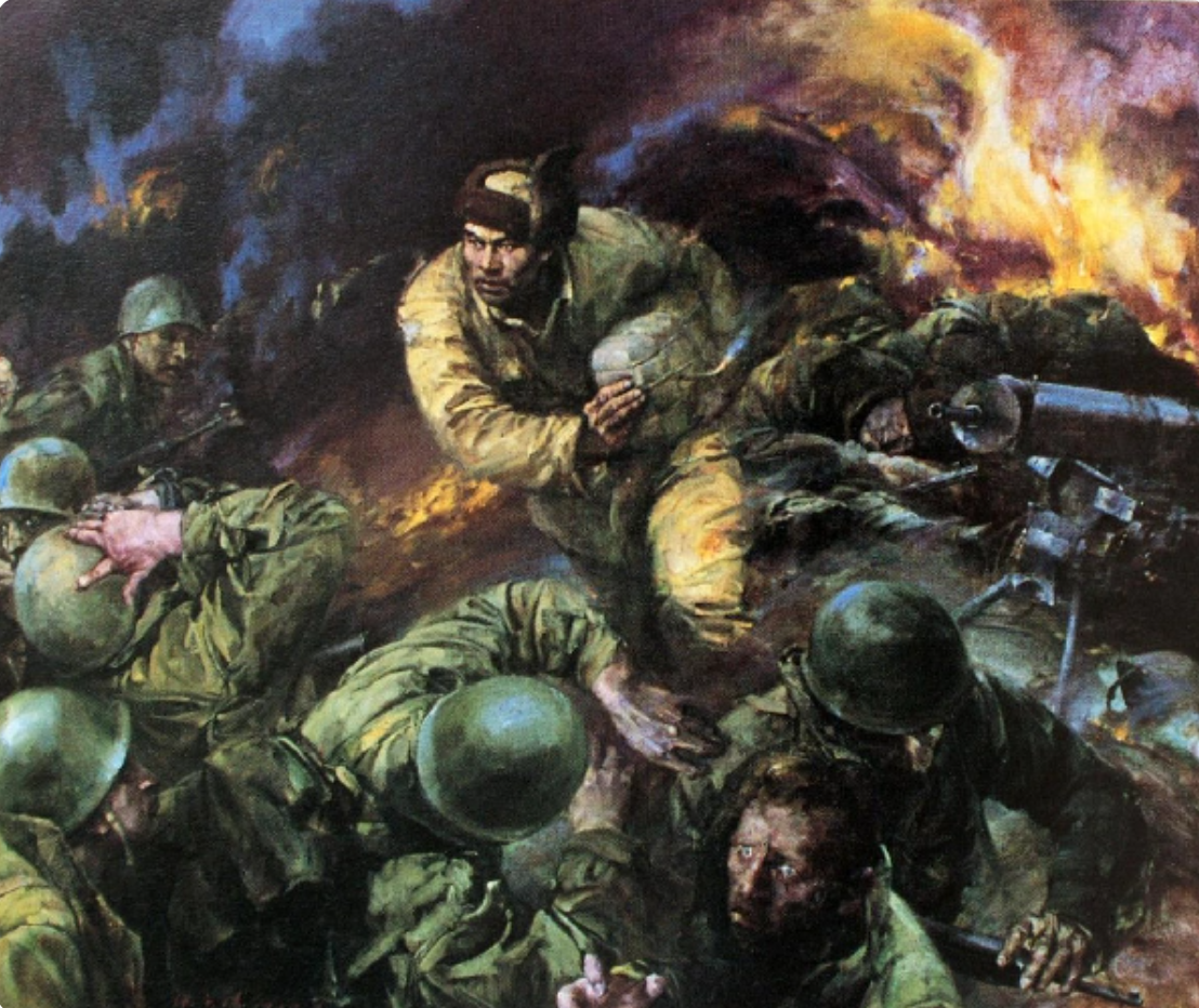 杨根思拉燃导火索纵身冲进敌群。(作者:张庆涛)