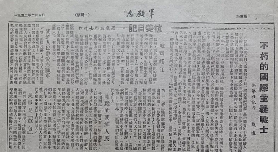 《不朽的国际主义战士》(志愿军报,1952年2月5日)