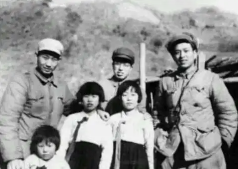 戴煌(右一)、李振翼(后中)、石峰(后左)以新华社战地记者身份在朝鲜。