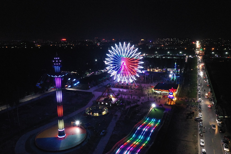 吴忠市利通区上桥镇牛家坊村欢乐谷夜景。
