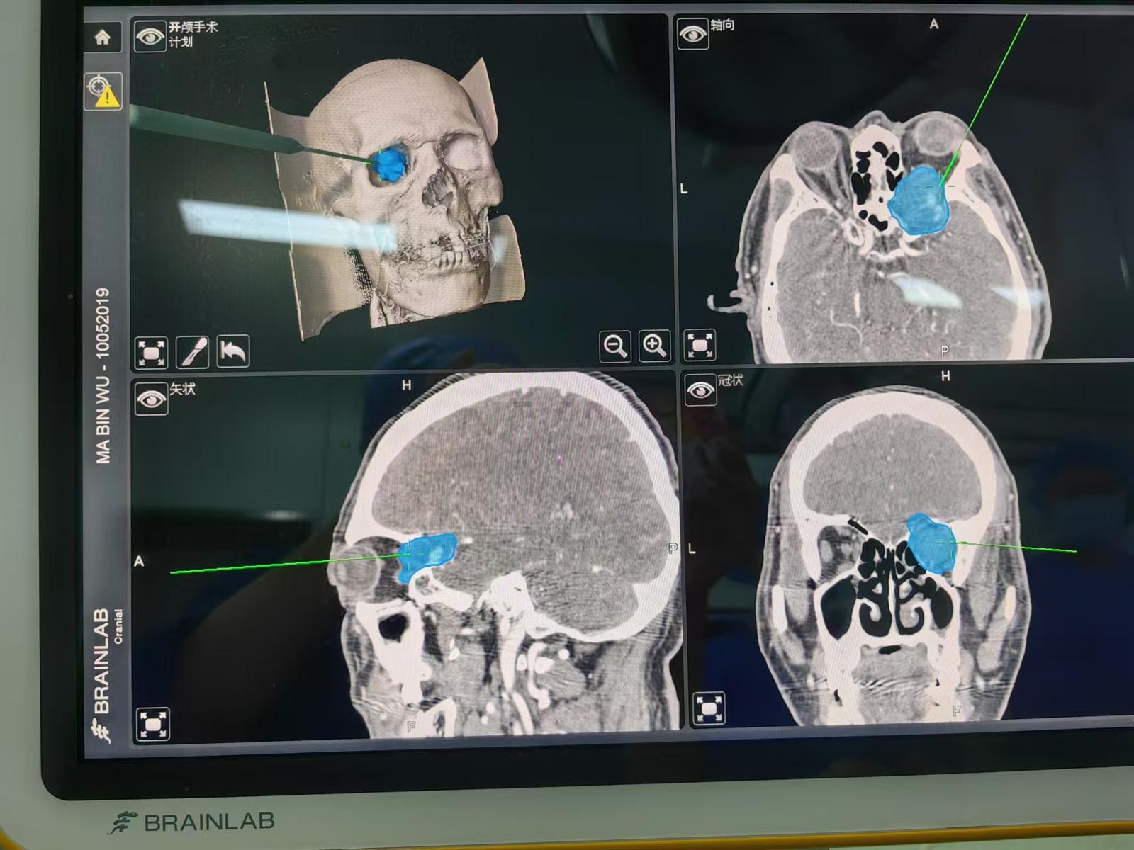 这个手术方式,将不用再采取骇人听闻的开颅手术,而是从患者的右眼进去手术器械,全程神经内镜下,自眼眶内通道微创切除相应区域的颅内肿瘤。
