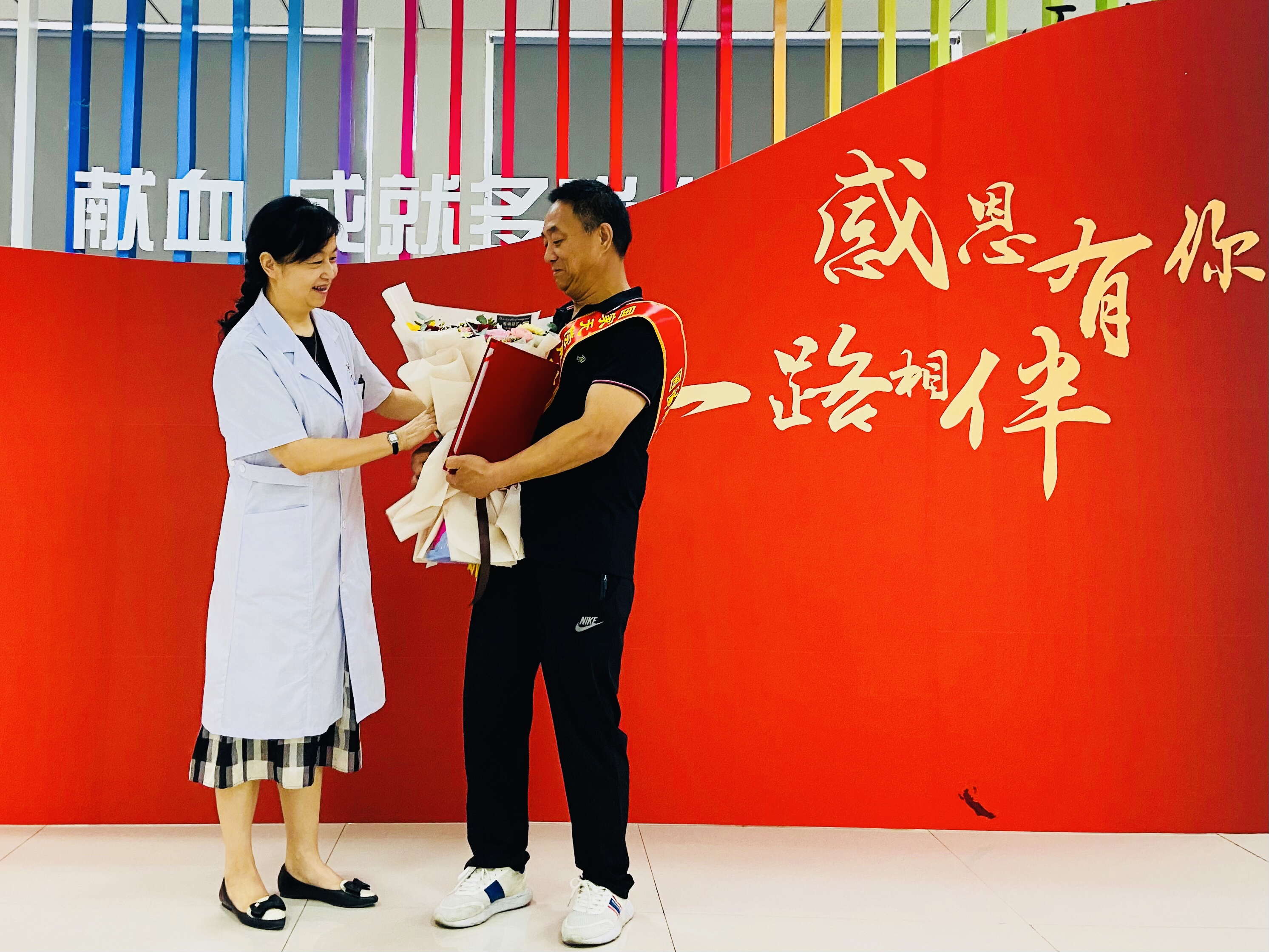 送荣誉上门活动还在继续,在广大献血者的支持下、陪伴下,我们也将以更加优质的服务回馈每一位献血者,我们也将以更加饱满的热情投入到采供血工作中,向采供血工作的高质量砥砺奋进。