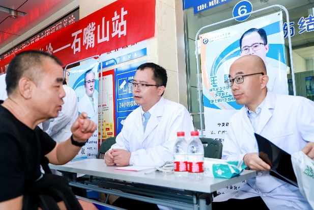 为深入贯彻落实党中央、国务院关于推进优质医疗资源扩容下沉的决策部署,充分发挥中组部、团中央博士服务团智力帮扶作用,切实提升基层医疗机构服务能力,2025年5月23日,“中组部、团中央第25批宁夏博士服务团巡回义诊-石嘴山站”活动在宁夏回族自治区第五人民医院成功举办。来自全国三甲医院的7位博士团专家深入基层一线,通过义诊、手术示教、教学查房及病例讨论等形式,为当地群众健康“把脉”,为医疗技术提升“传经送宝”。