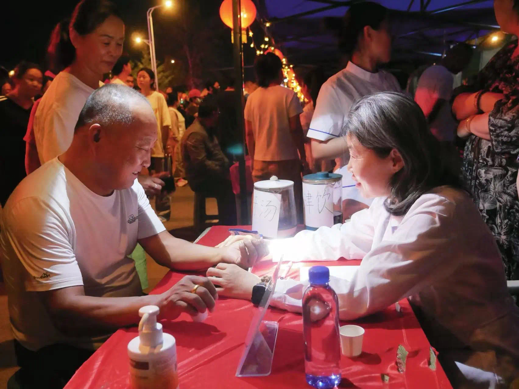 义诊区,专家们耐心把脉问诊,细致解答健康疑问并提供个性化指导,贴心服务获市民频频点赞。推拿、艾灸、耳穴压豆等技术体验区前,市民早早排起长队,在家门口享受专业服务。