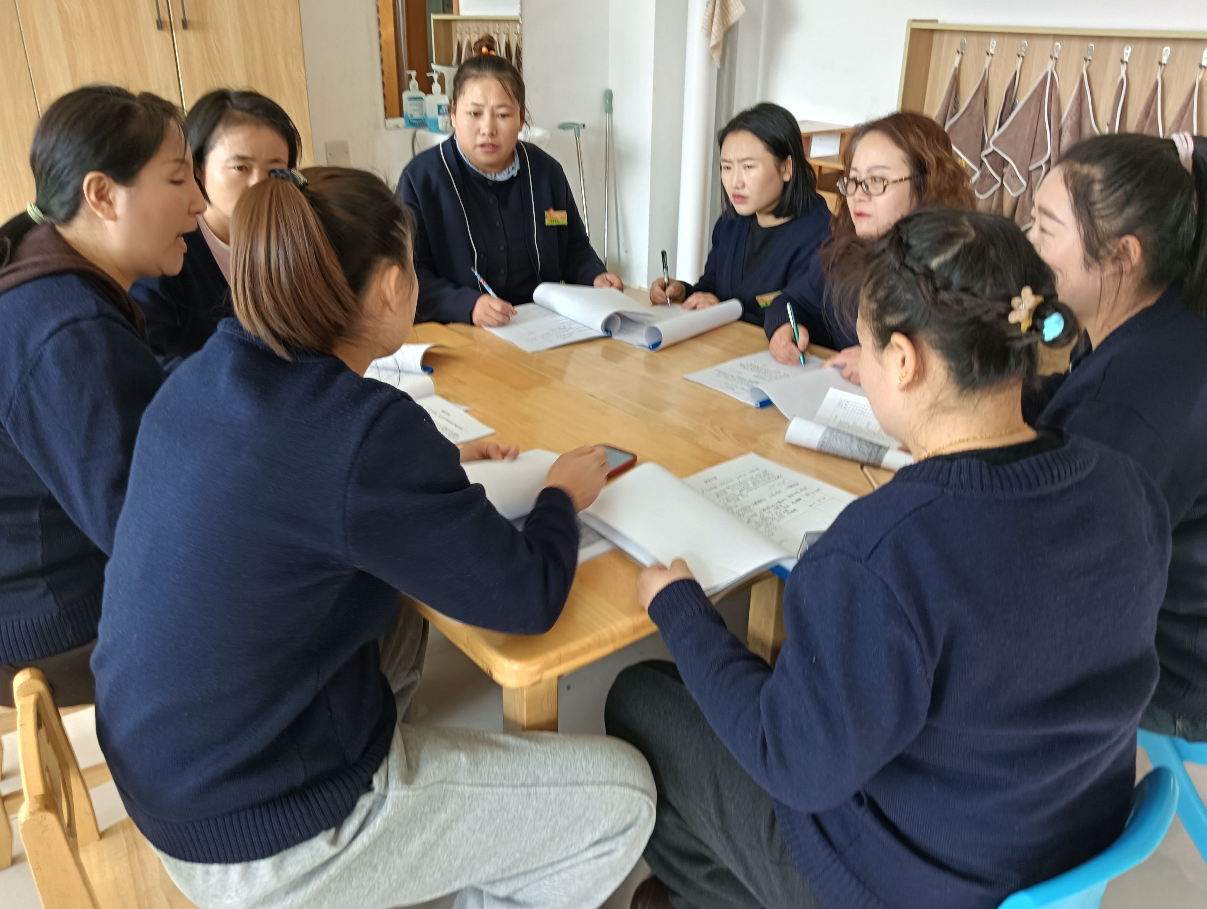 学习采用“短时高频、靶向赋能”模式,鼓励教师利用课间休息的10 - 15分钟,围绕康复领域前沿理论、特殊儿童行为干预技巧、个性化康复方案设计、档案规范书写等内容展开自主学习。老师们研读专业书籍、观看教学案例视频、或交流教学心得,把碎片化时间充分利用起来。部分教师还结合日常教学中遇到的难点问题,在课间进行小型研讨,分享实用的解决办法,实现了“学中思、思中用、用中进”的良性循环。